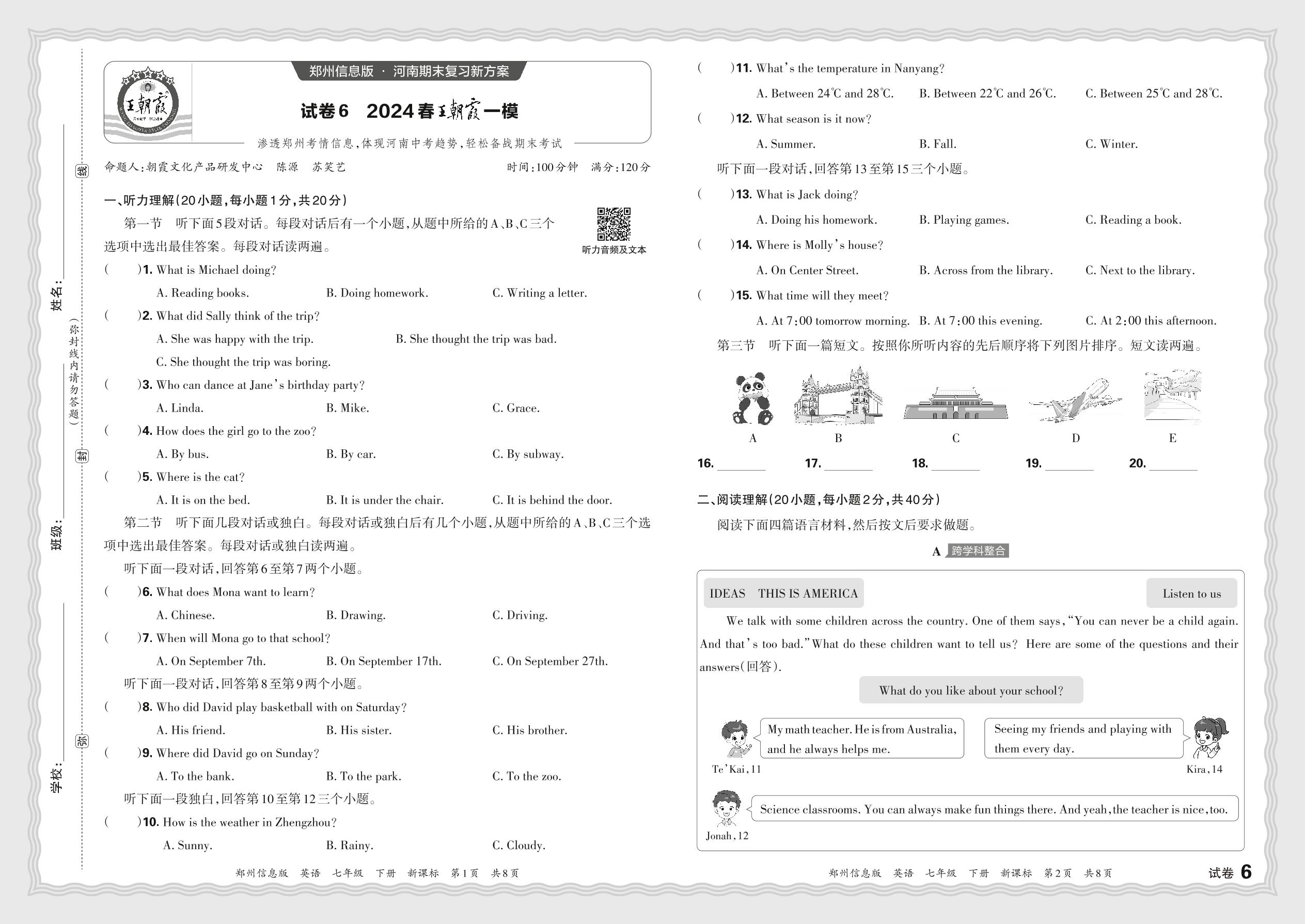 2024春下册七年级英语新课标版 郑州期末王朝霞一模