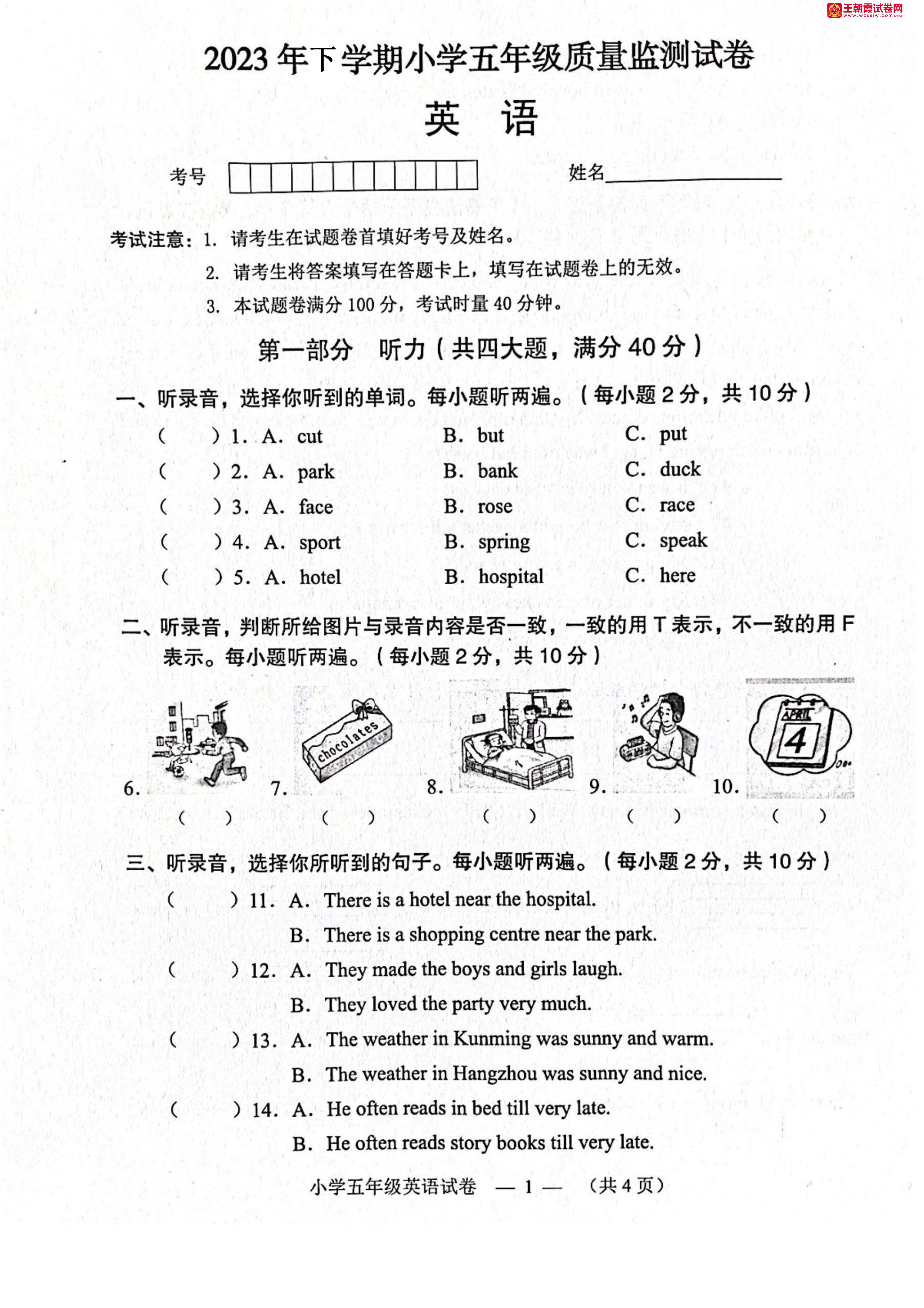 湖南省常德市鼎城区2022-2023学年下学期期末质量监测试卷五年级英语(湘少版)【无听力音频】