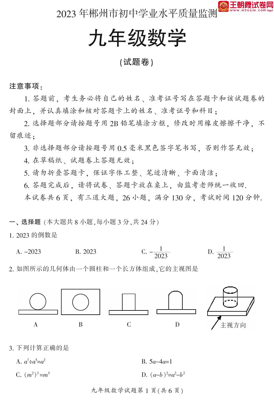湖南省郴州市2022-2023学年下学期期末学业水平质量监测九年级数学(湘教版)