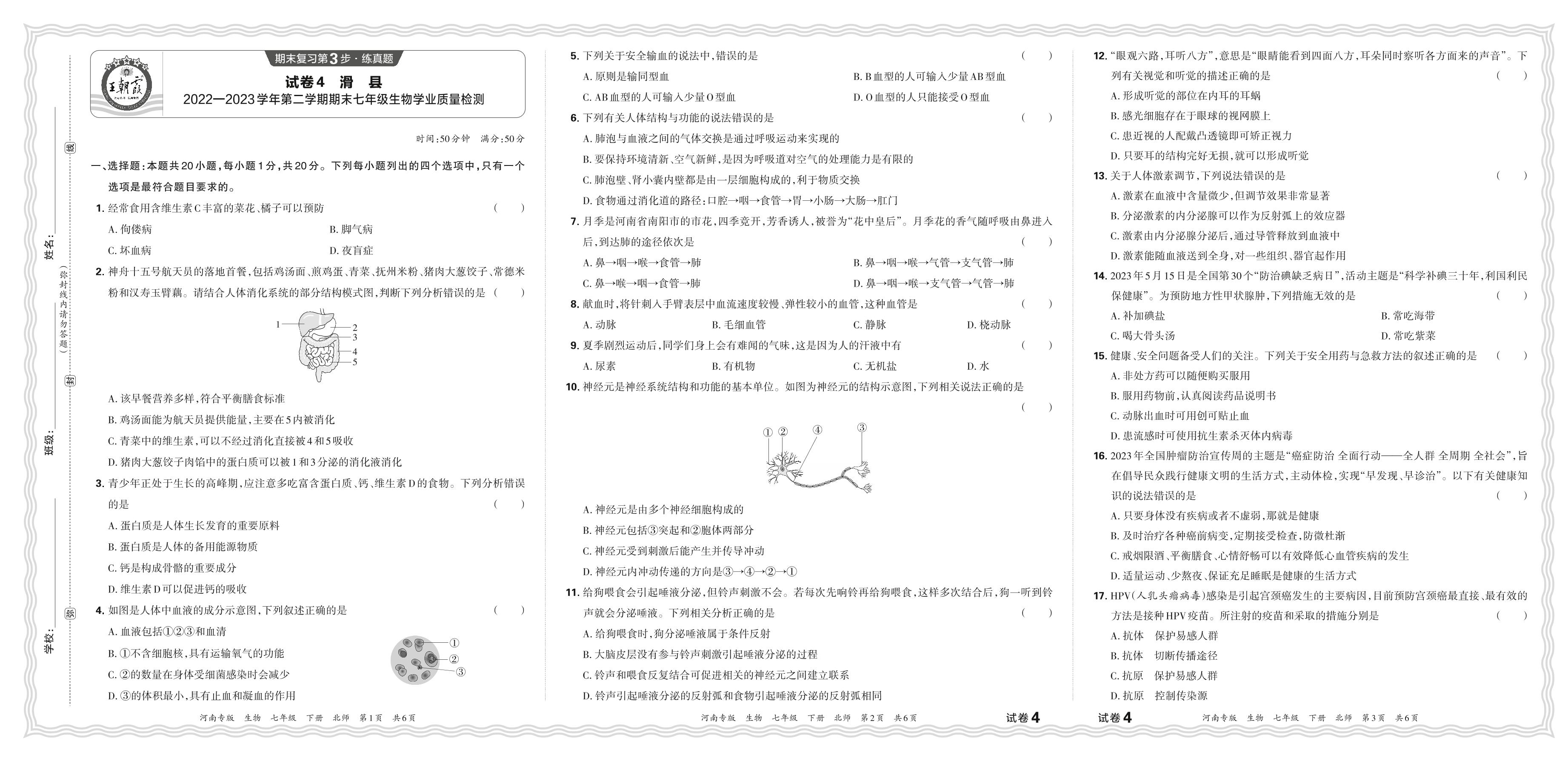 河南省滑县2022-2023学年第二学期期末七年级生物学业质量检测(北师版)【4】