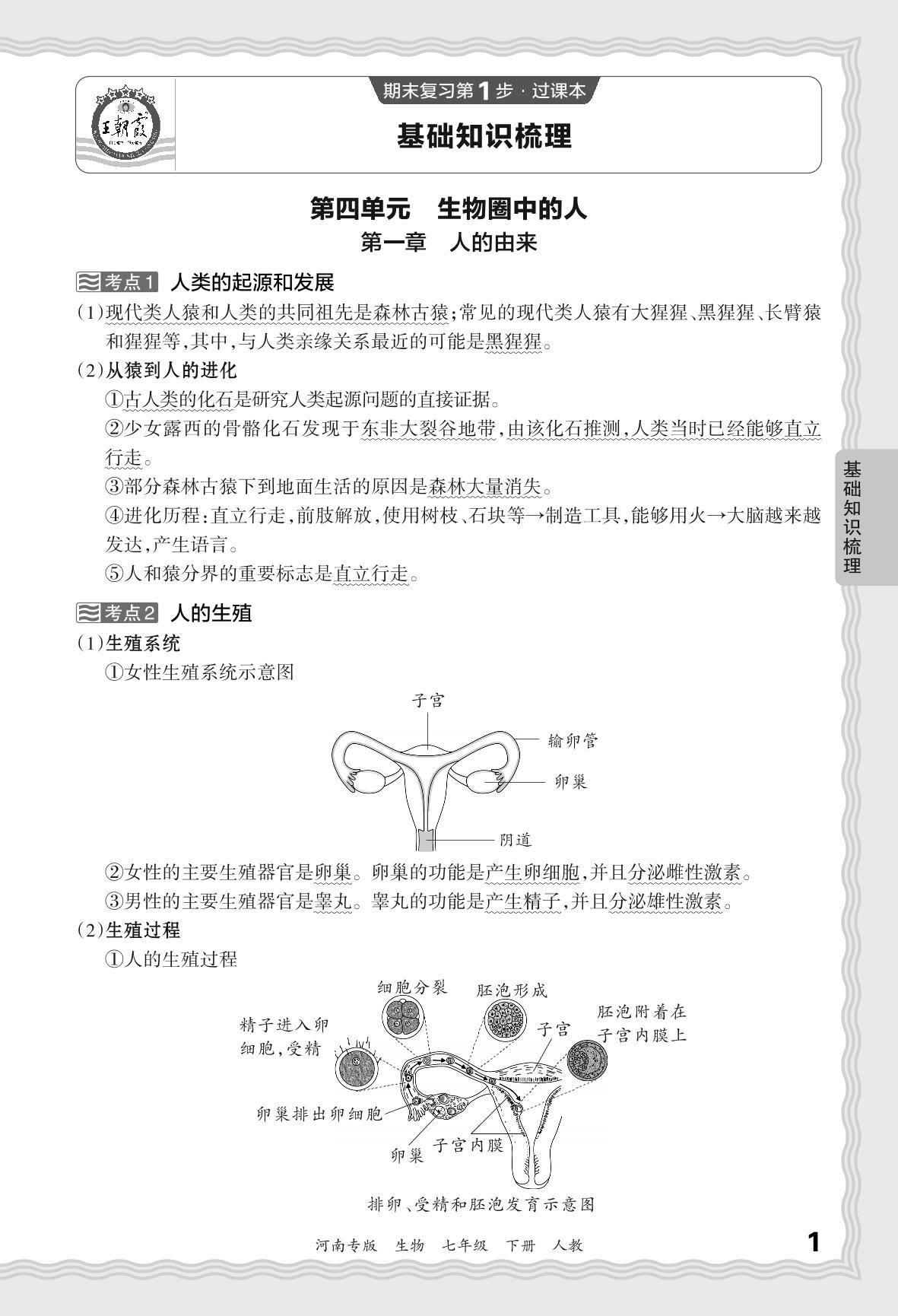 2024春下册七年级生物人教版 期末过课本河南版·基础知识梳理 第四单元 生物圈中的人