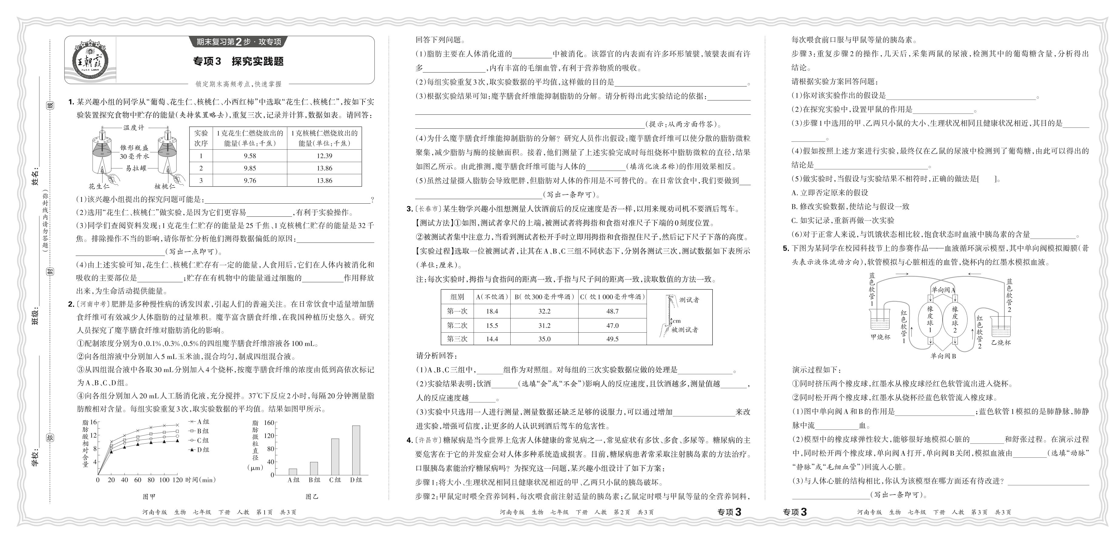 2024春下册七年级生物人教版 期末专项卷河南版·探究实践题【3】