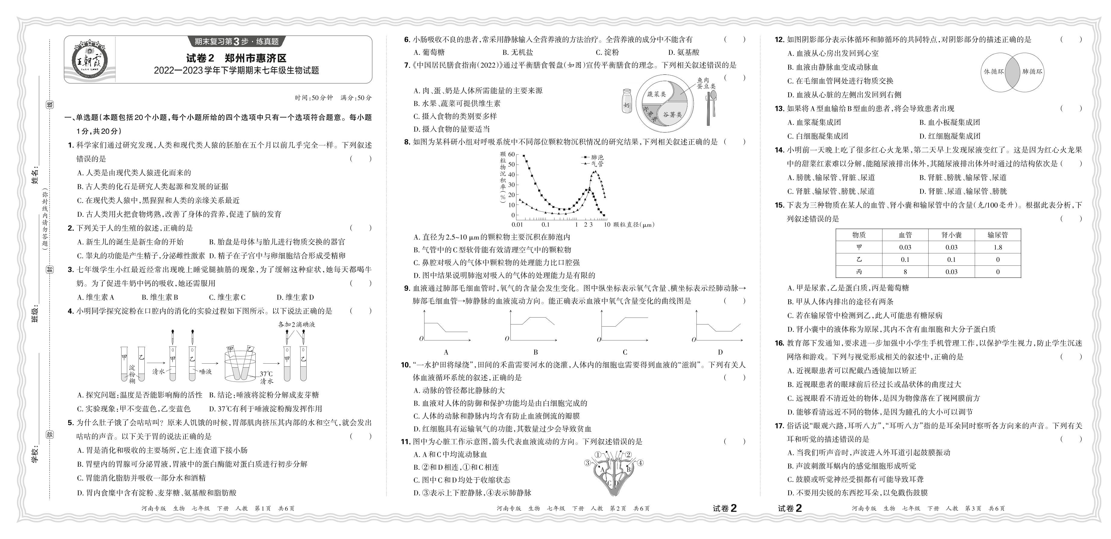 河南省郑州市惠济区2022-2023学年下学期期末七年级生物试题(人教版)【2】