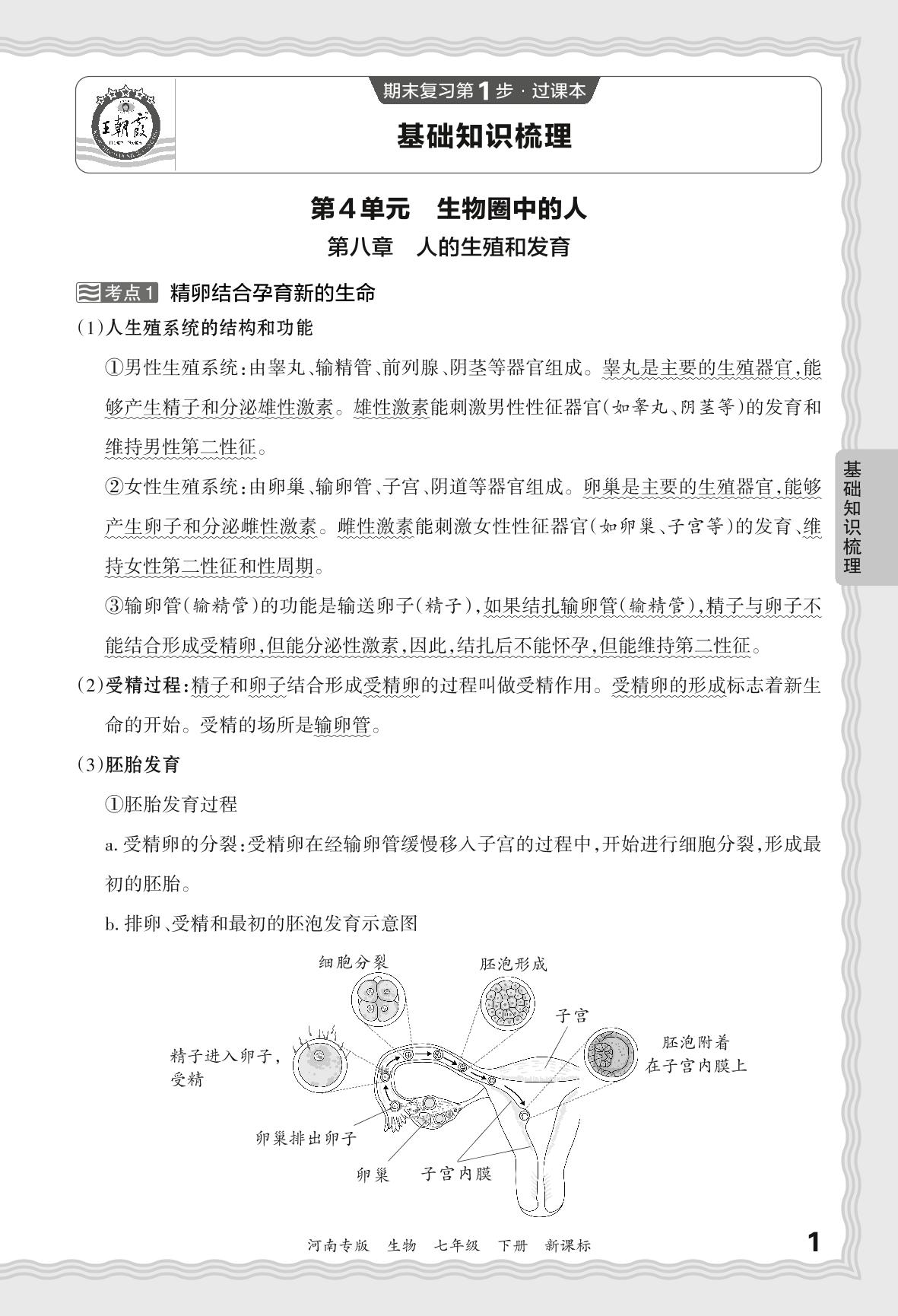 2024春下册七年级生物新课标版 期末过课本河南版·基础知识梳理 第4单元 生物圈中的人