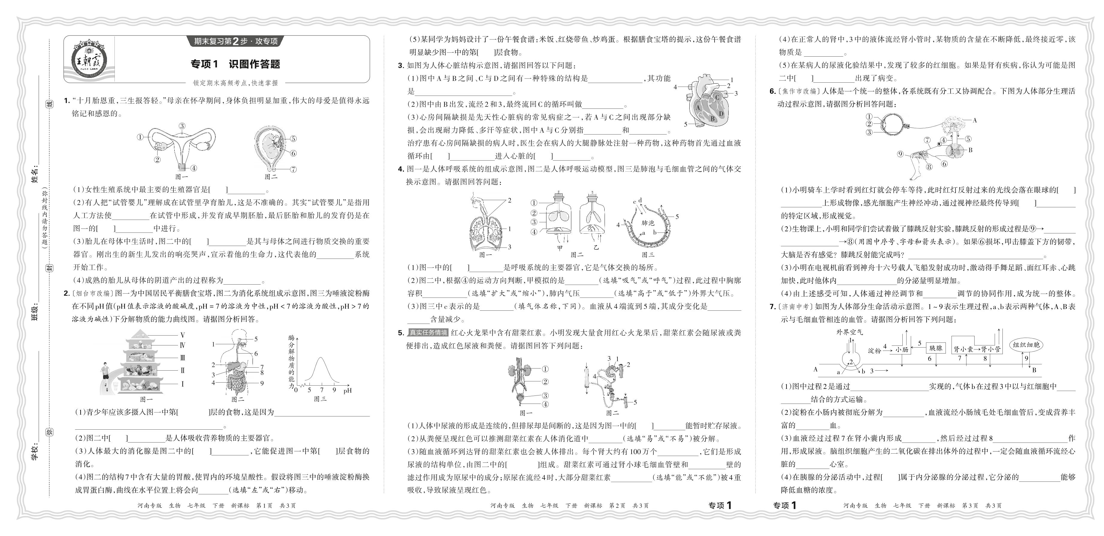 2024春下册七年级生物新课标版 期末专项卷河南版·识图作答题【1】