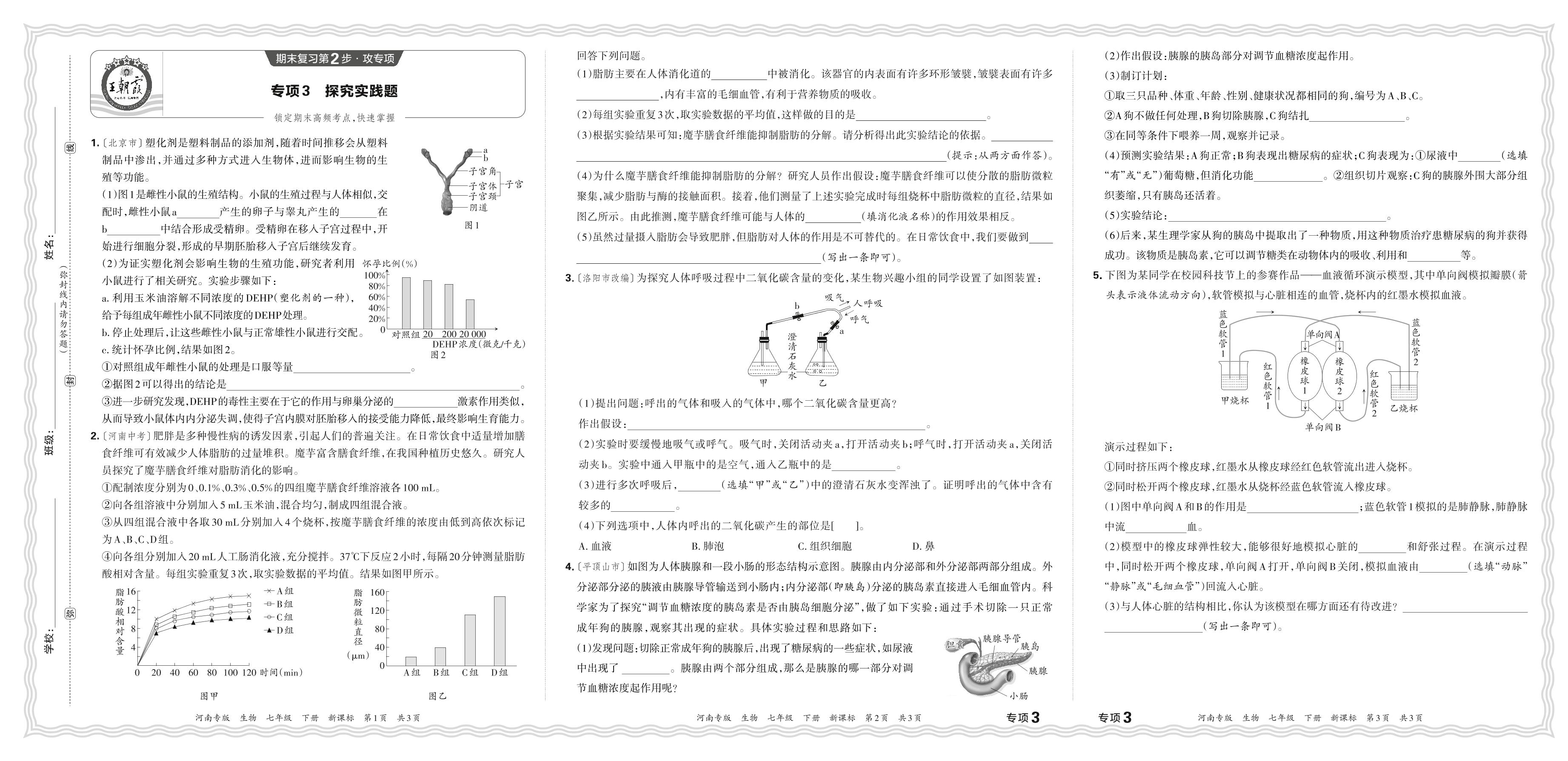 2024春下册七年级生物新课标版 期末专项卷河南版·探究实践题【3】