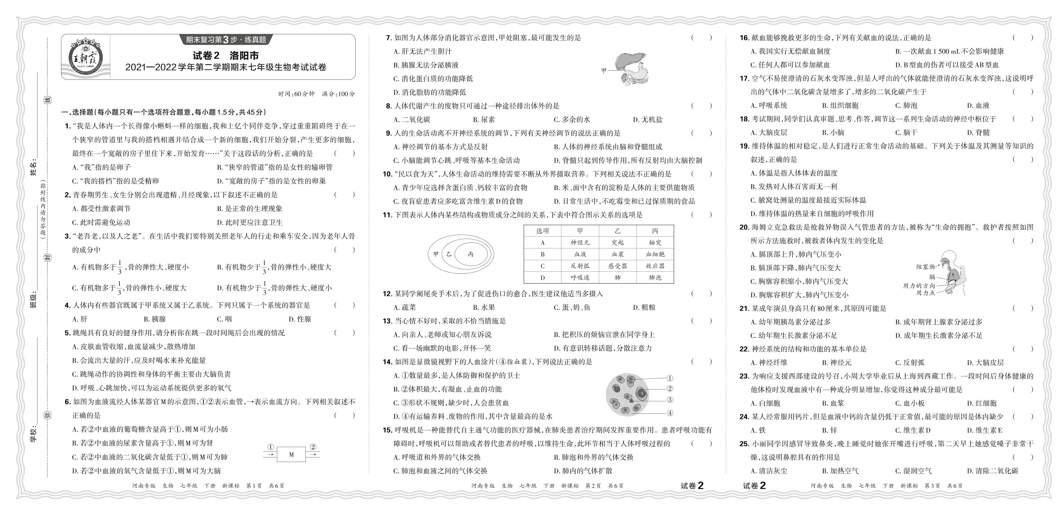 七年级生物新课标版下册期末卷