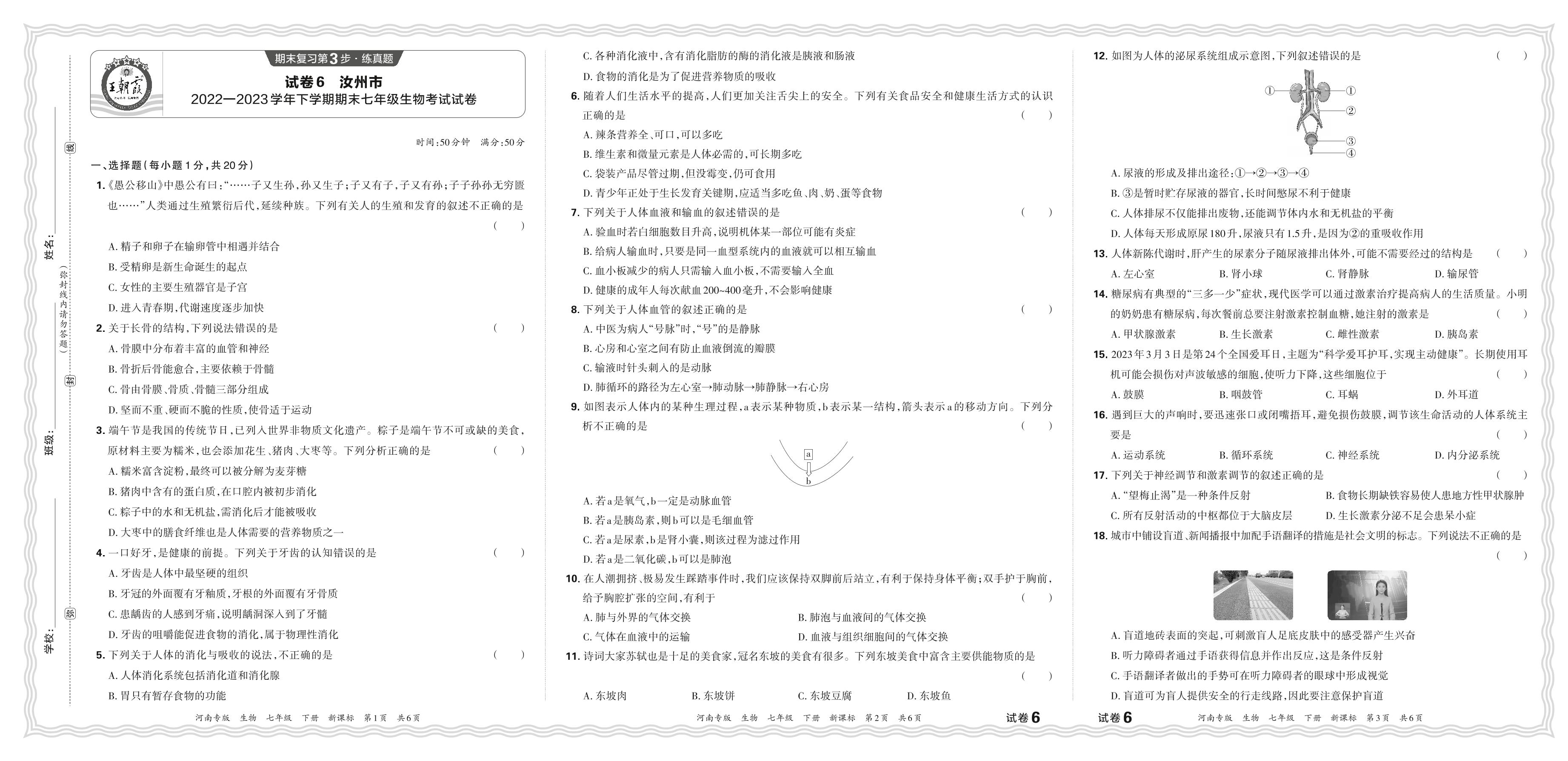 七年级生物新课标版下册期末卷