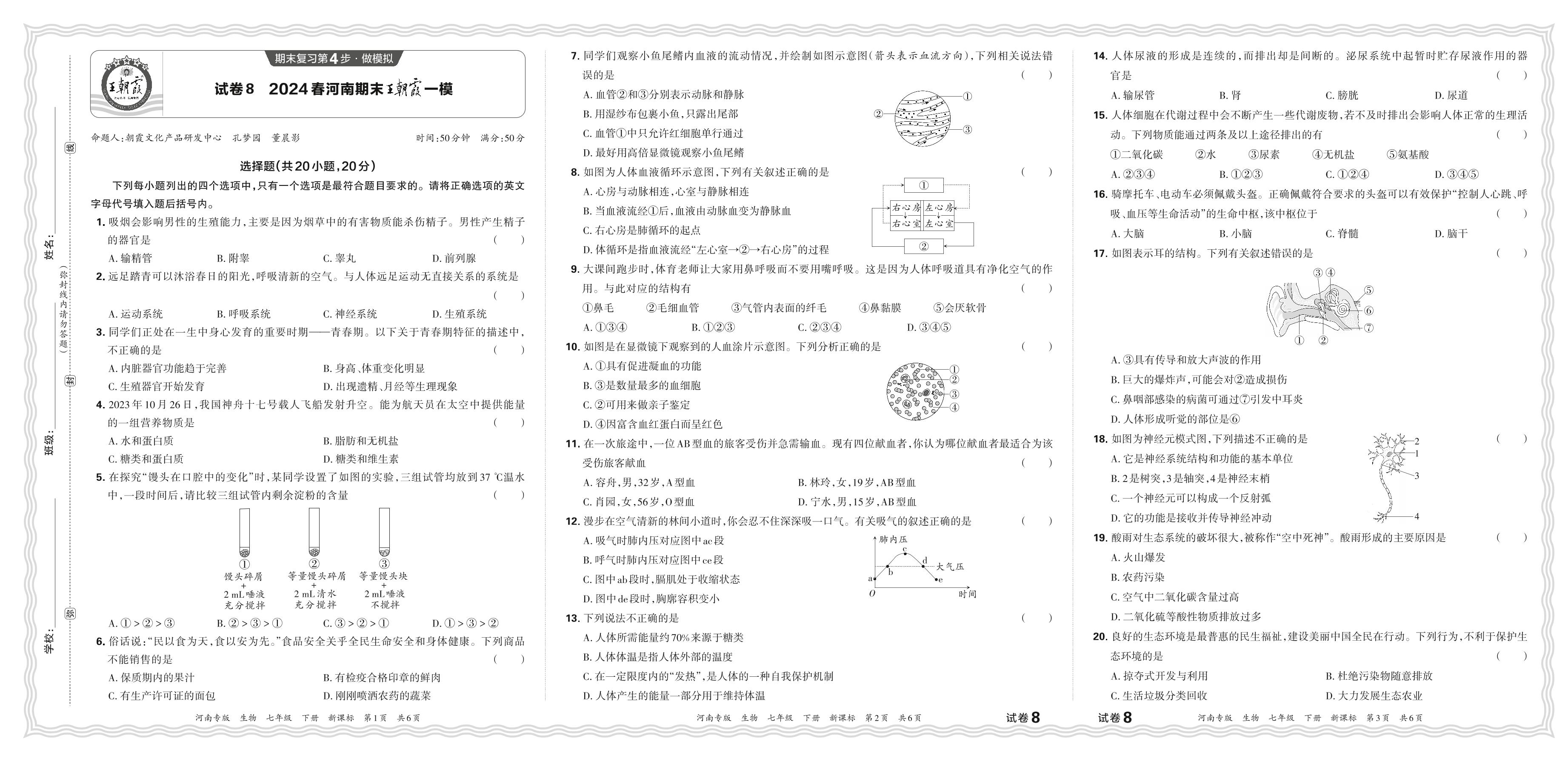 2024春下册七年级生物新课标版 河南期末王朝霞一模