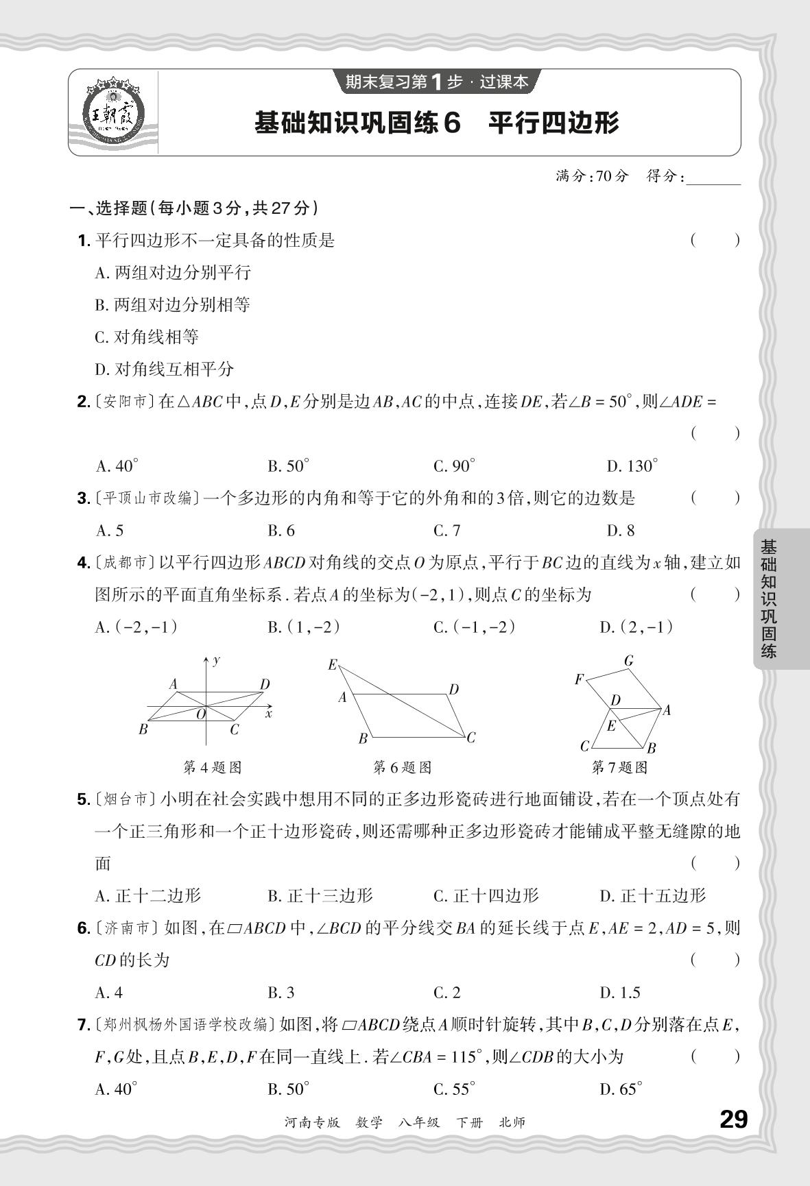 2024春下册八年级数学北师版 期末过课本河南版·基础知识巩固练 平行四边形【6】