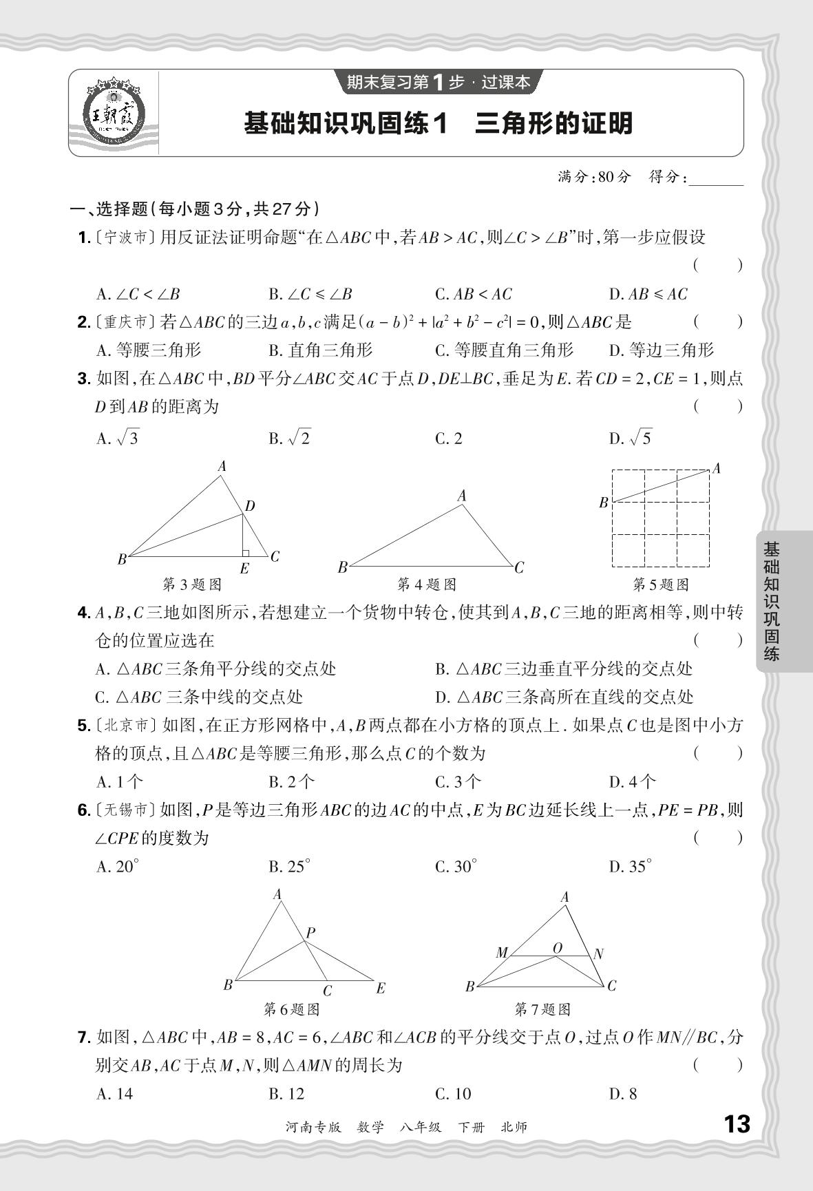 2024春下册八年级数学北师版 期末过课本河南版·基础知识巩固练 三角形的证明【1】