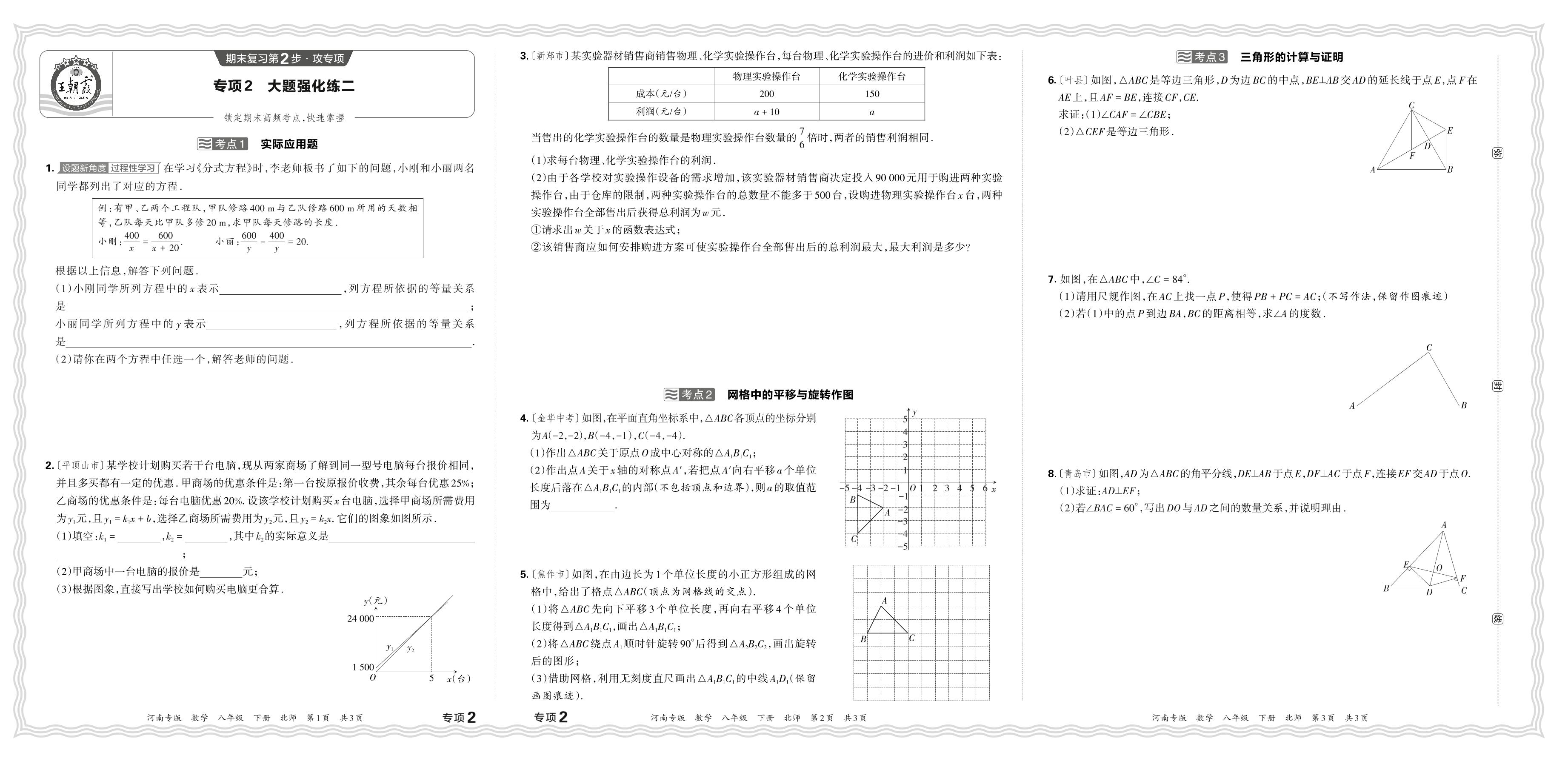 2024春下册八年级数学北师版 期末专项卷河南版·大题强化练二