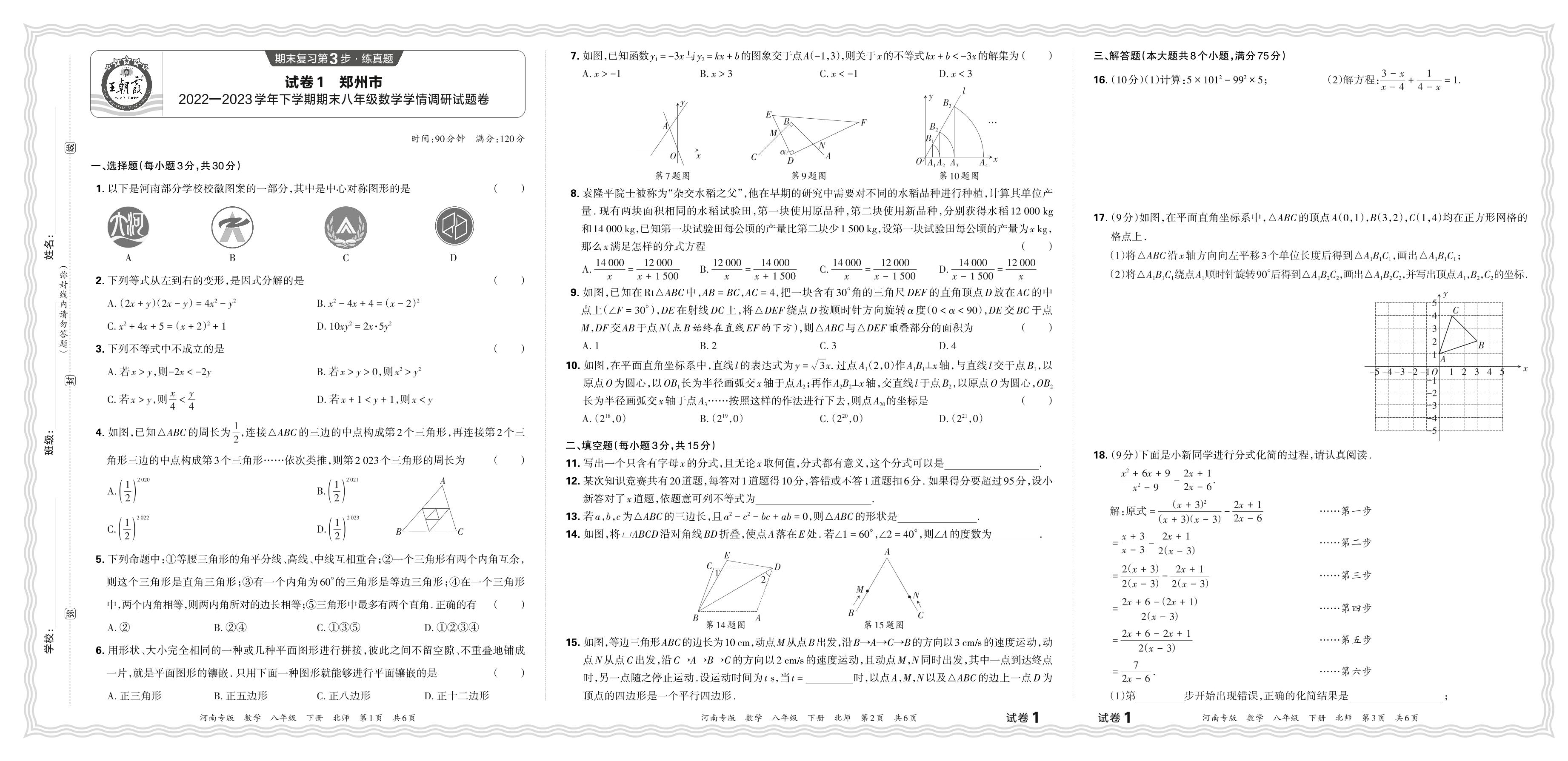 河南省郑州市2022-2023学年下学期期末八年级数学学情调研试题卷(北师版)【1】
