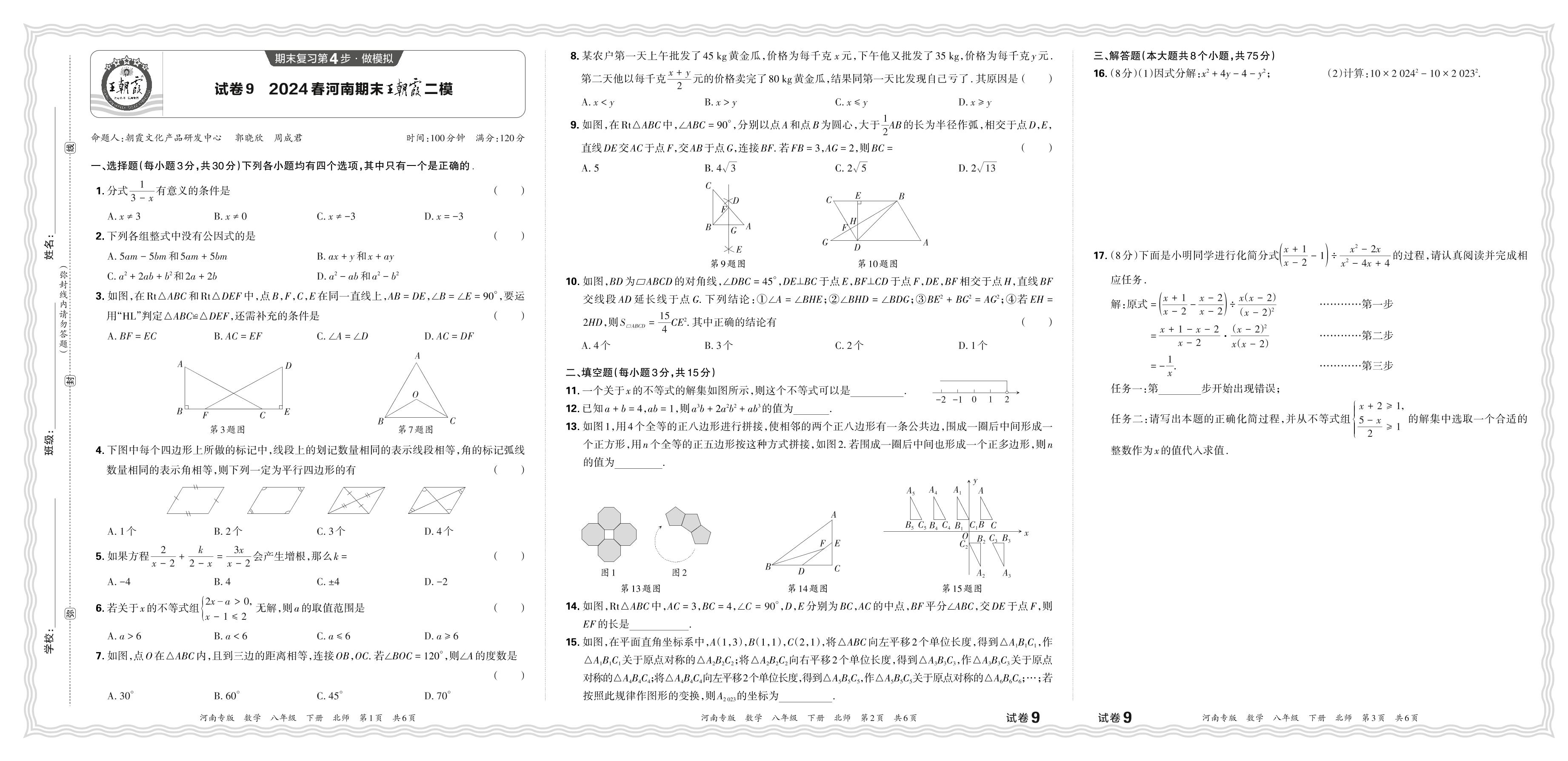 2024春下册八年级数学北师版 河南期末王朝霞二模