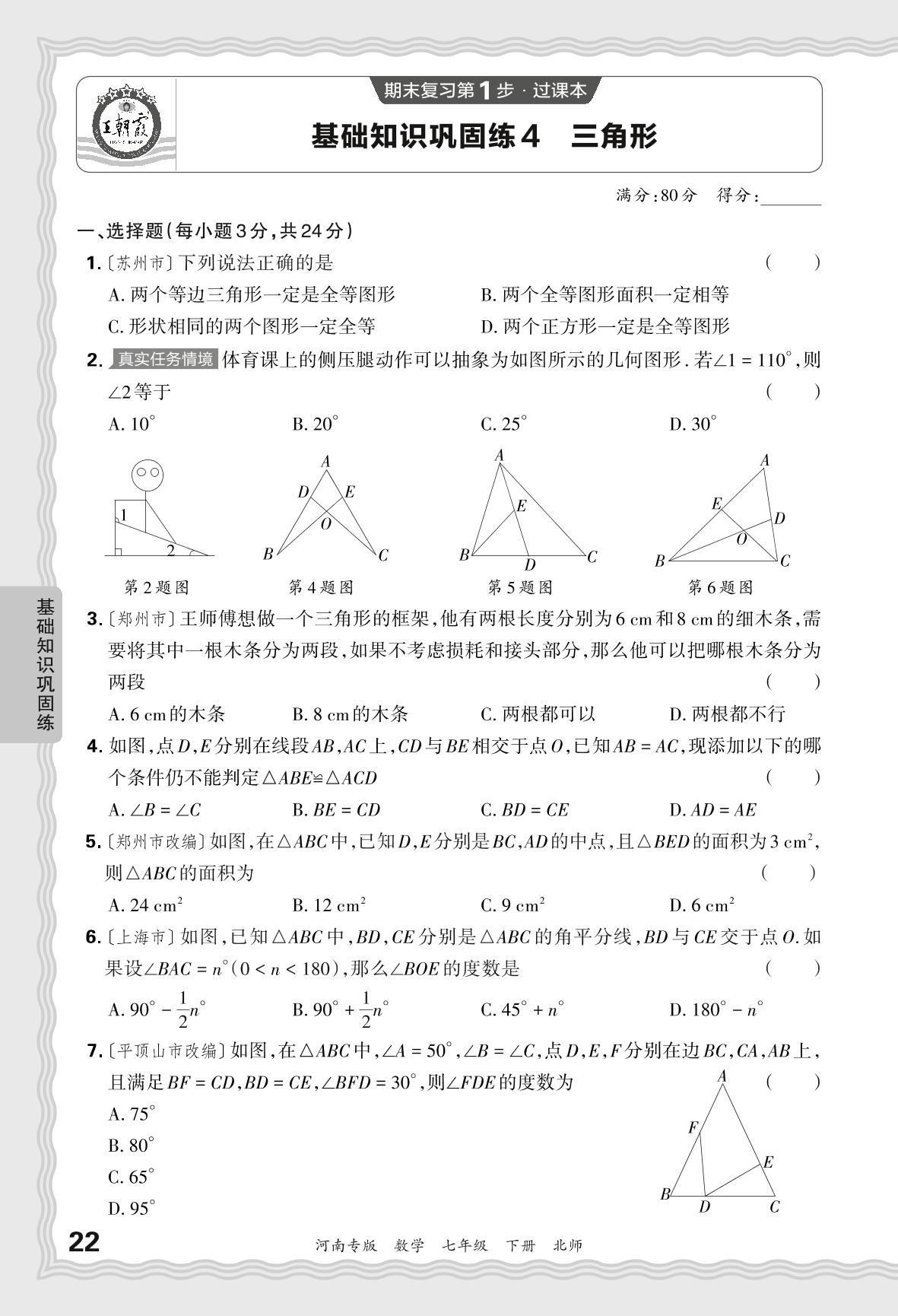 2024春下册七年级数学北师版 期末过课本河南版·基础知识巩固练 三角形【4】
