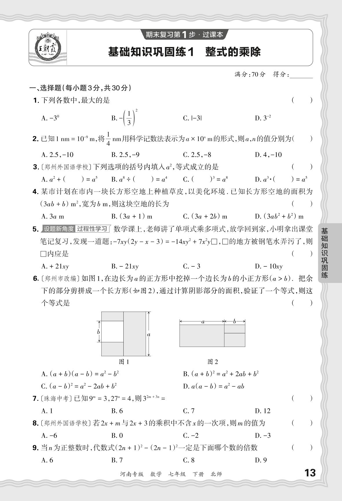 2024春下册七年级数学北师版 期末过课本河南版·基础知识巩固练 整式的乘除【1】