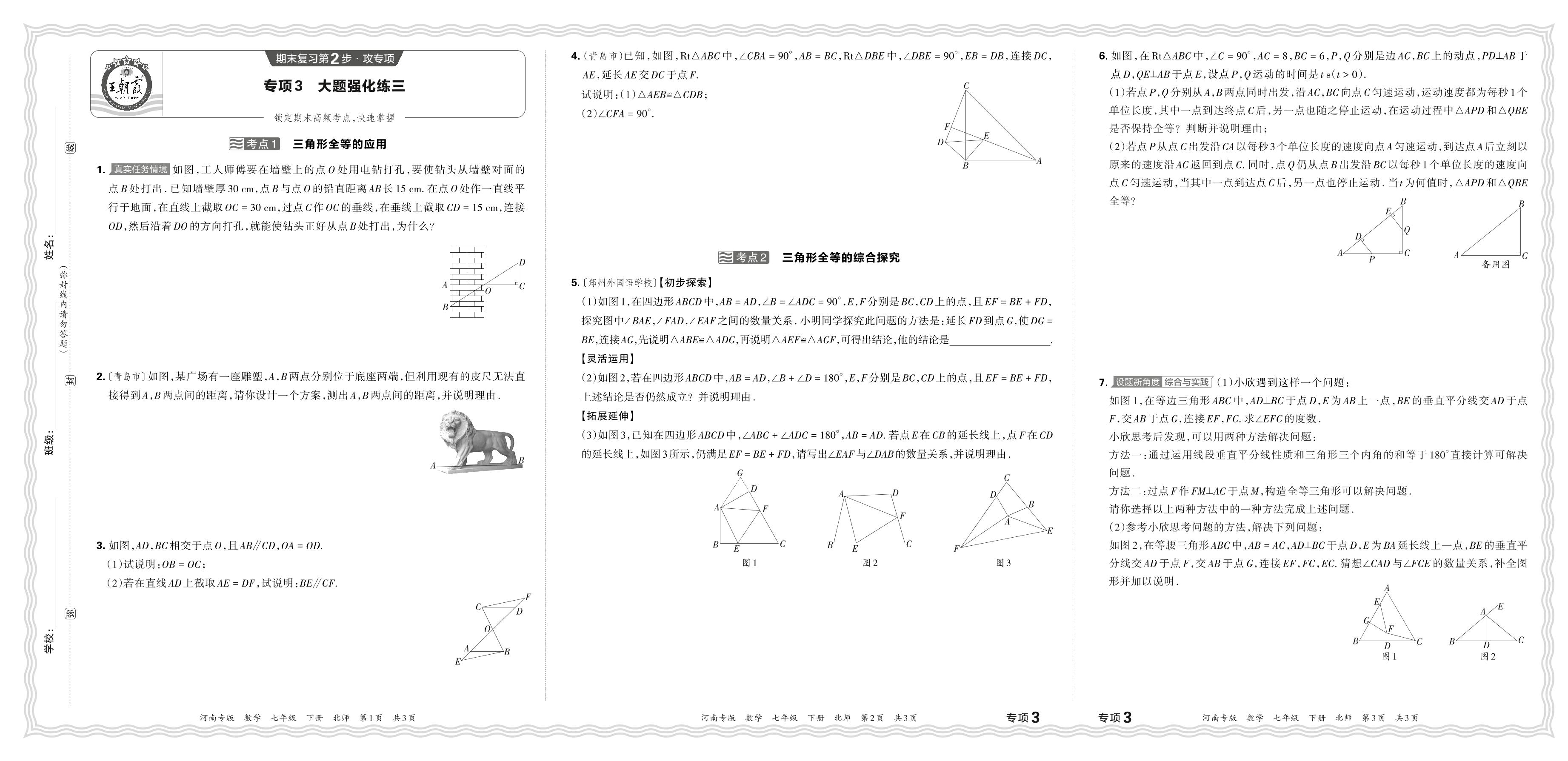 2024春下册七年级数学北师版 期末专项卷河南版·大题强化练三