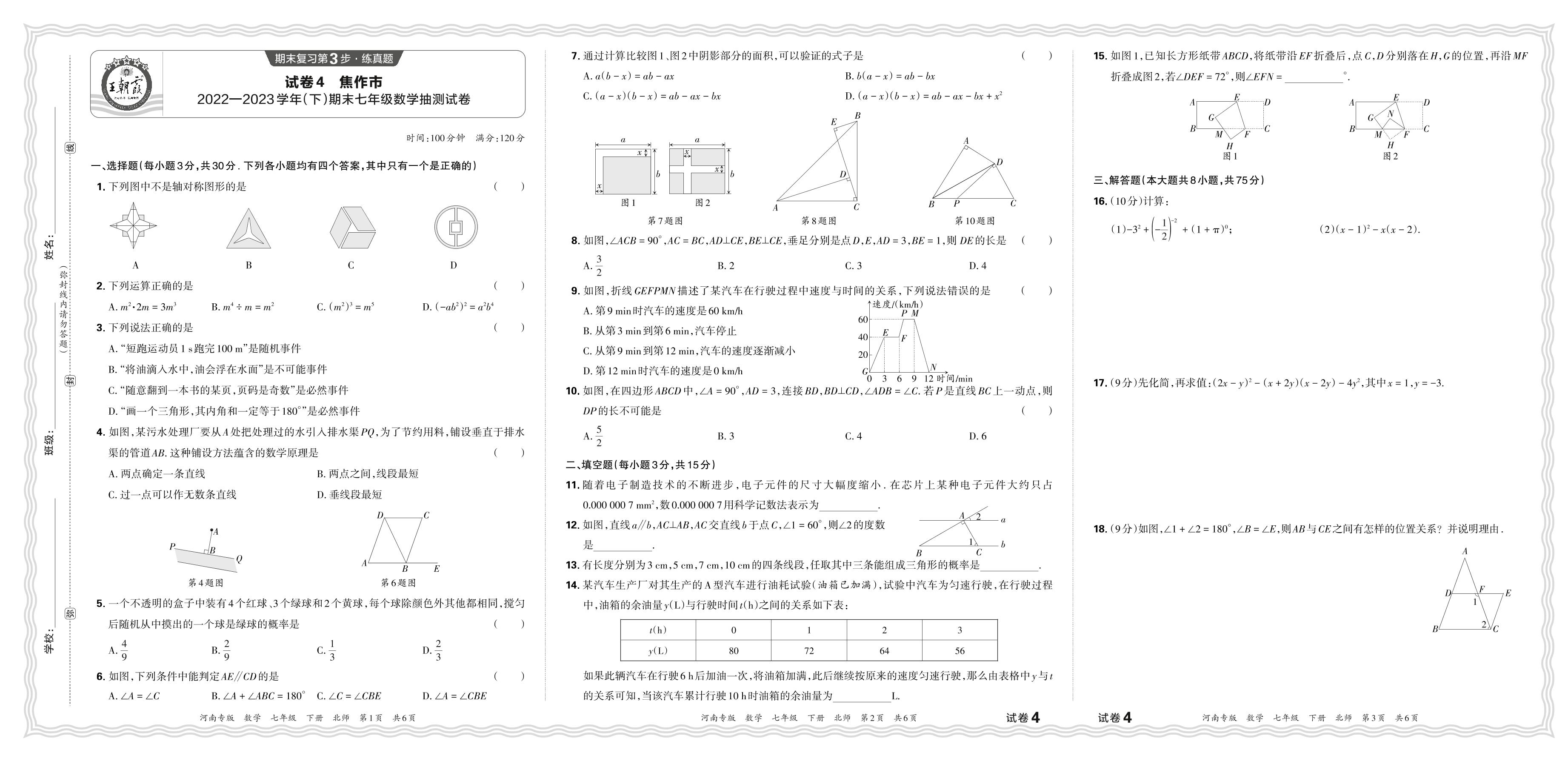河南省焦作市2022-2023学年(下)期末七年级数学抽测试卷(北师版)【4】