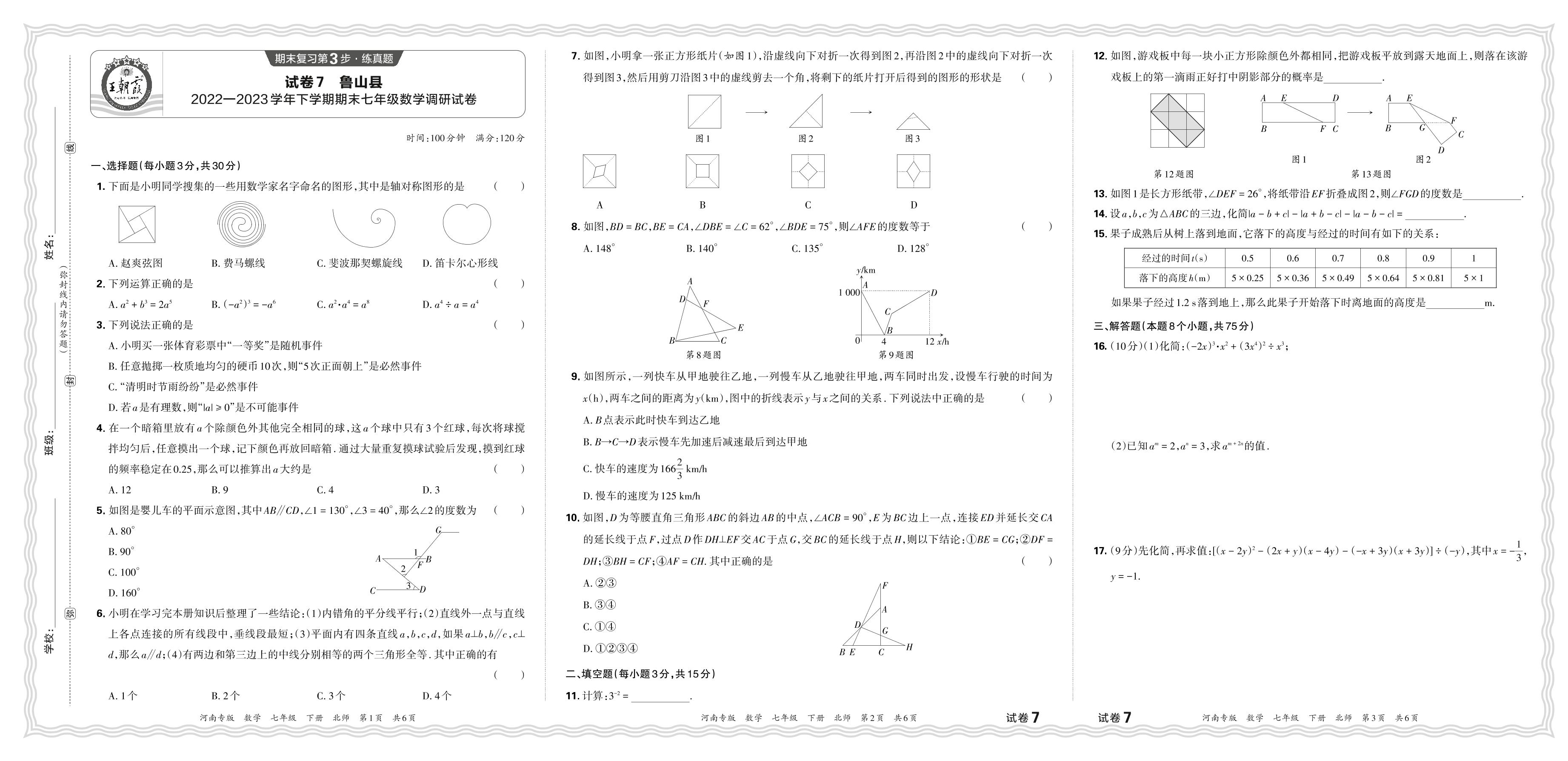 七年级数学北师版下册期末卷
