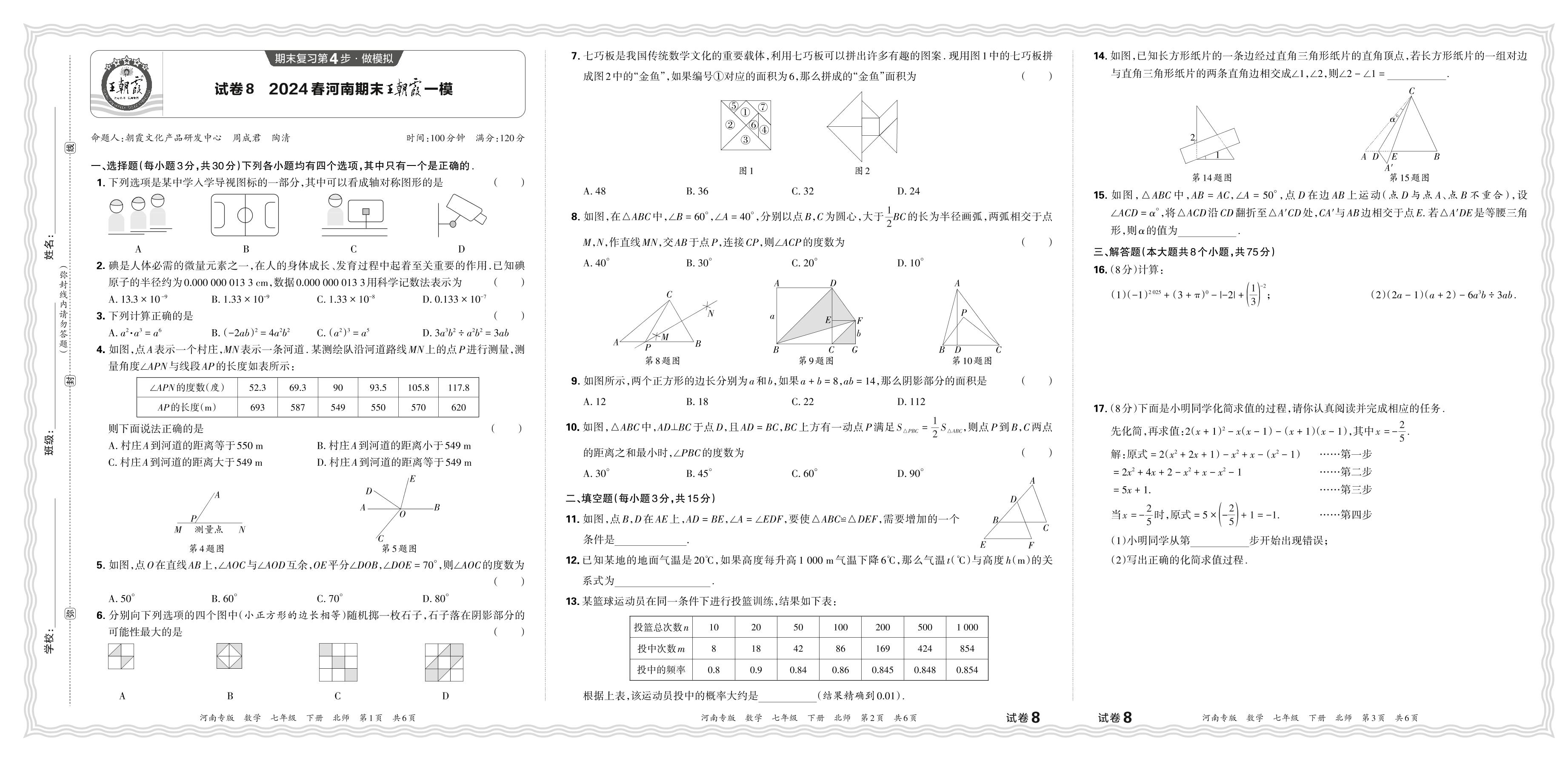 2024春下册七年级数学北师版 河南期末王朝霞一模