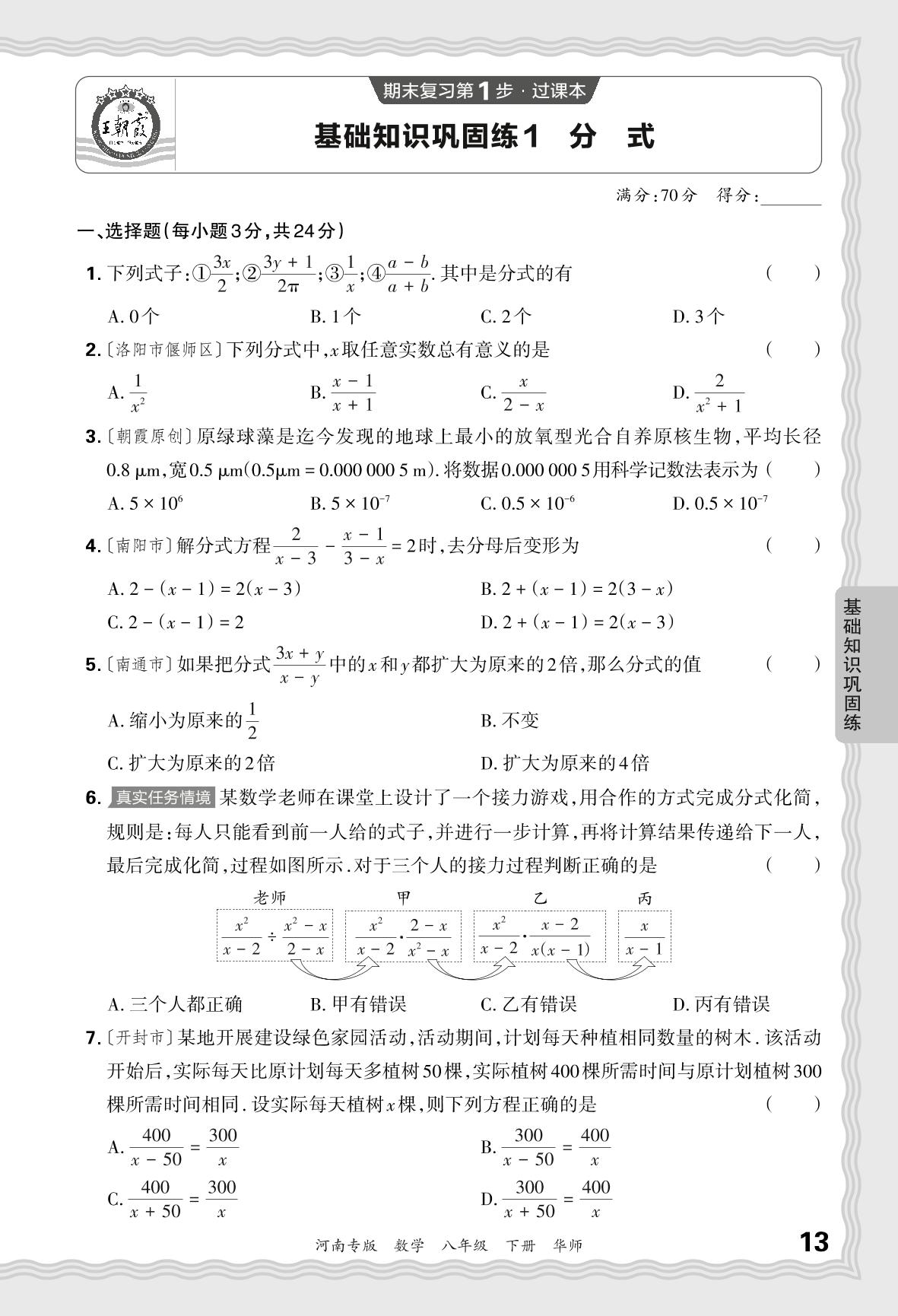 2024春下册八年级数学华师版 期末过课本河南版·基础知识巩固练 分式【1】