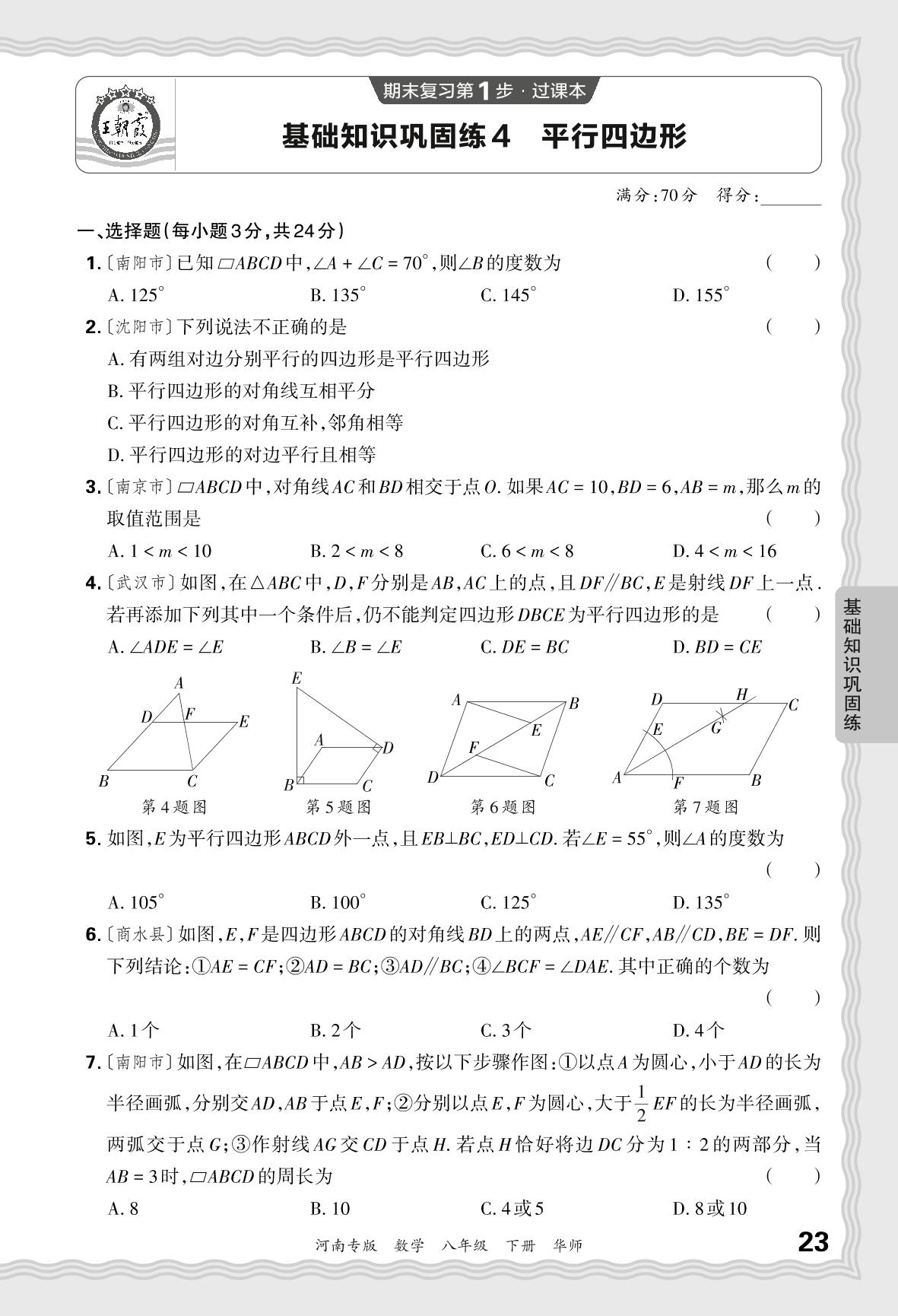 2024春下册八年级数学华师版 期末过课本河南版·基础知识巩固练 平行四边形【4】