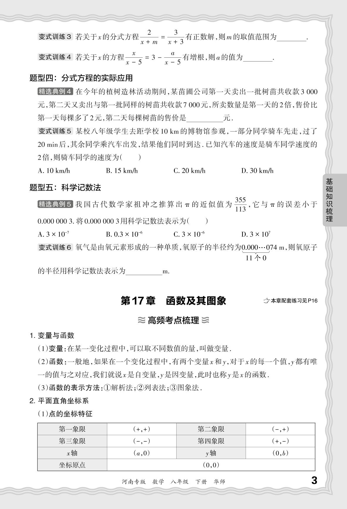 2024春下册八年级数学华师版 期末过课本河南版·基础知识梳理 第17章 函数及其图像