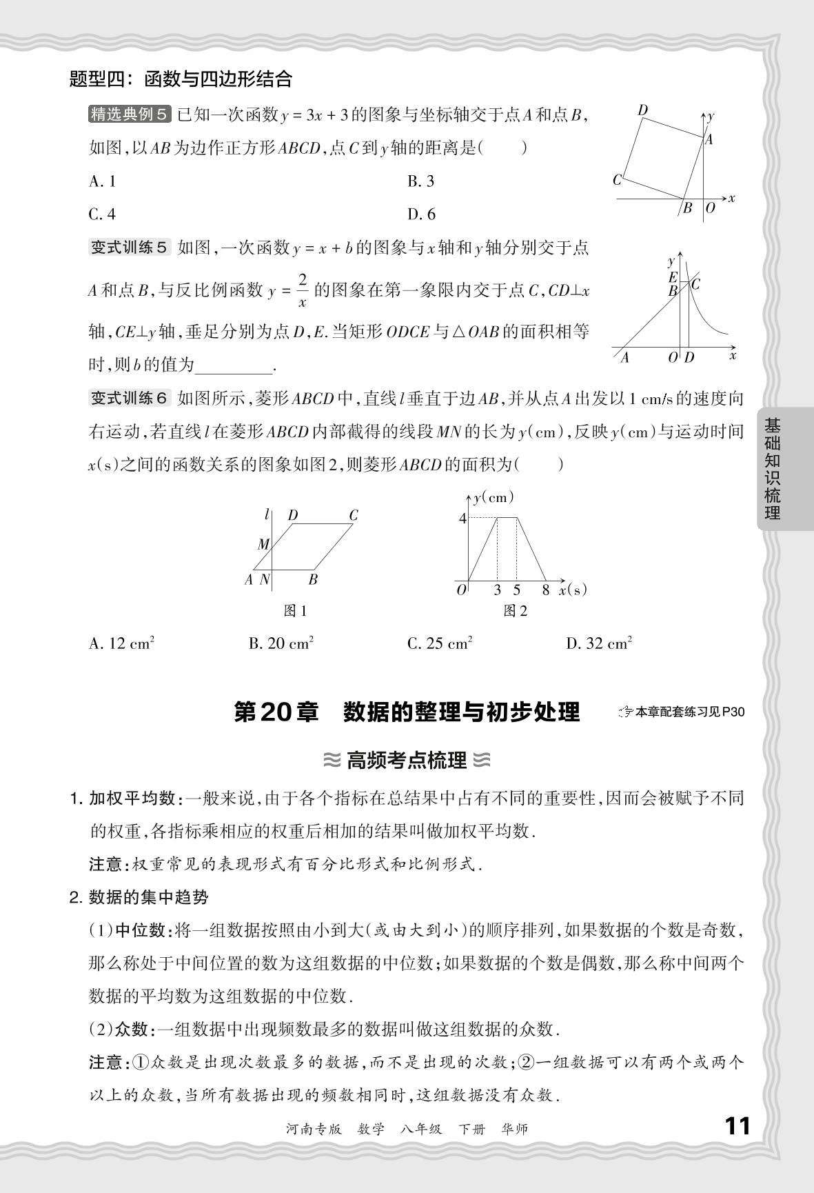 2024春下册八年级数学华师版 期末过课本河南版·基础知识梳理 第20章 数据的整理与初步处理