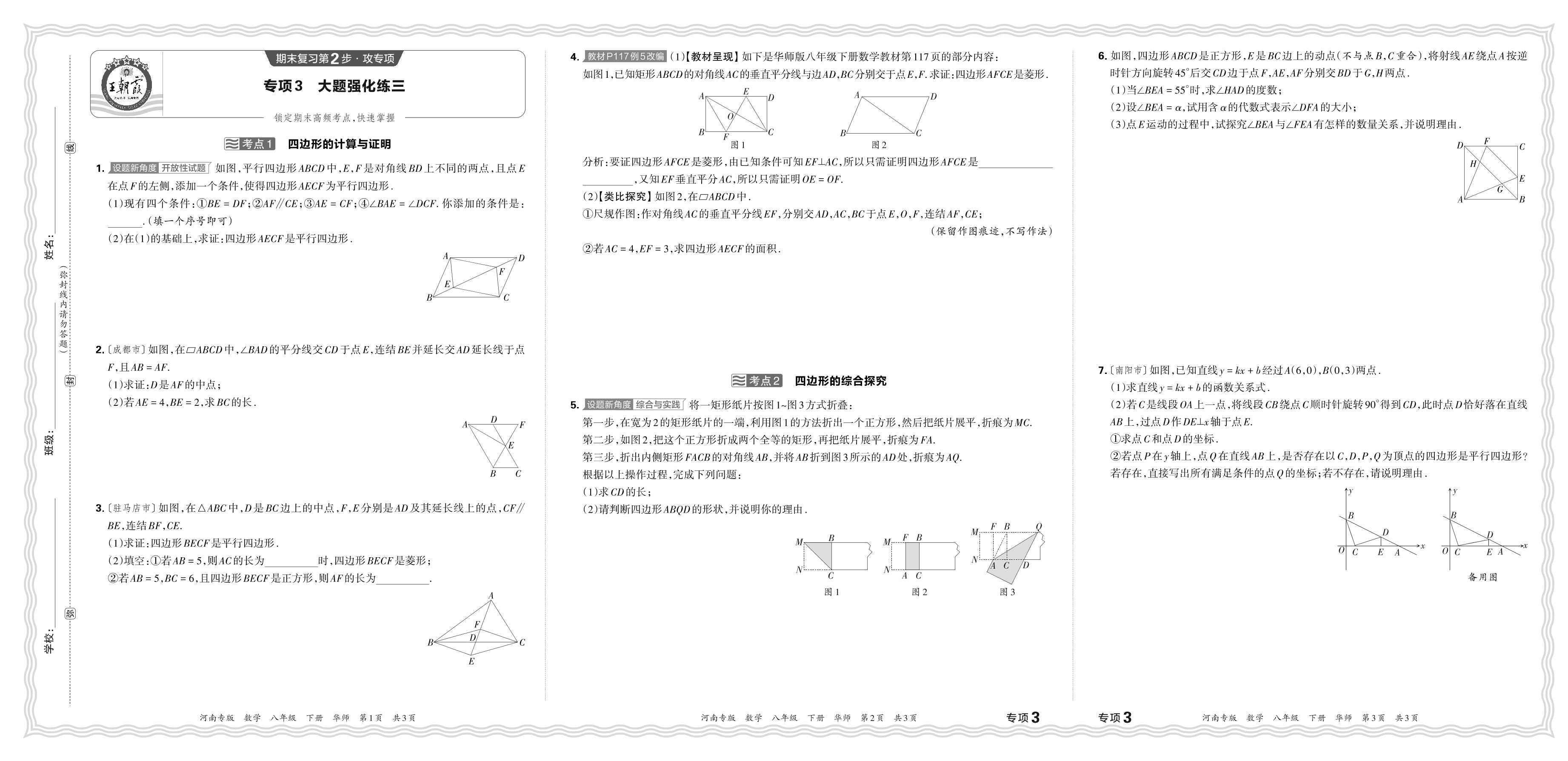2024春下册八年级数学华师版 期末专项卷河南版·大题强化练三