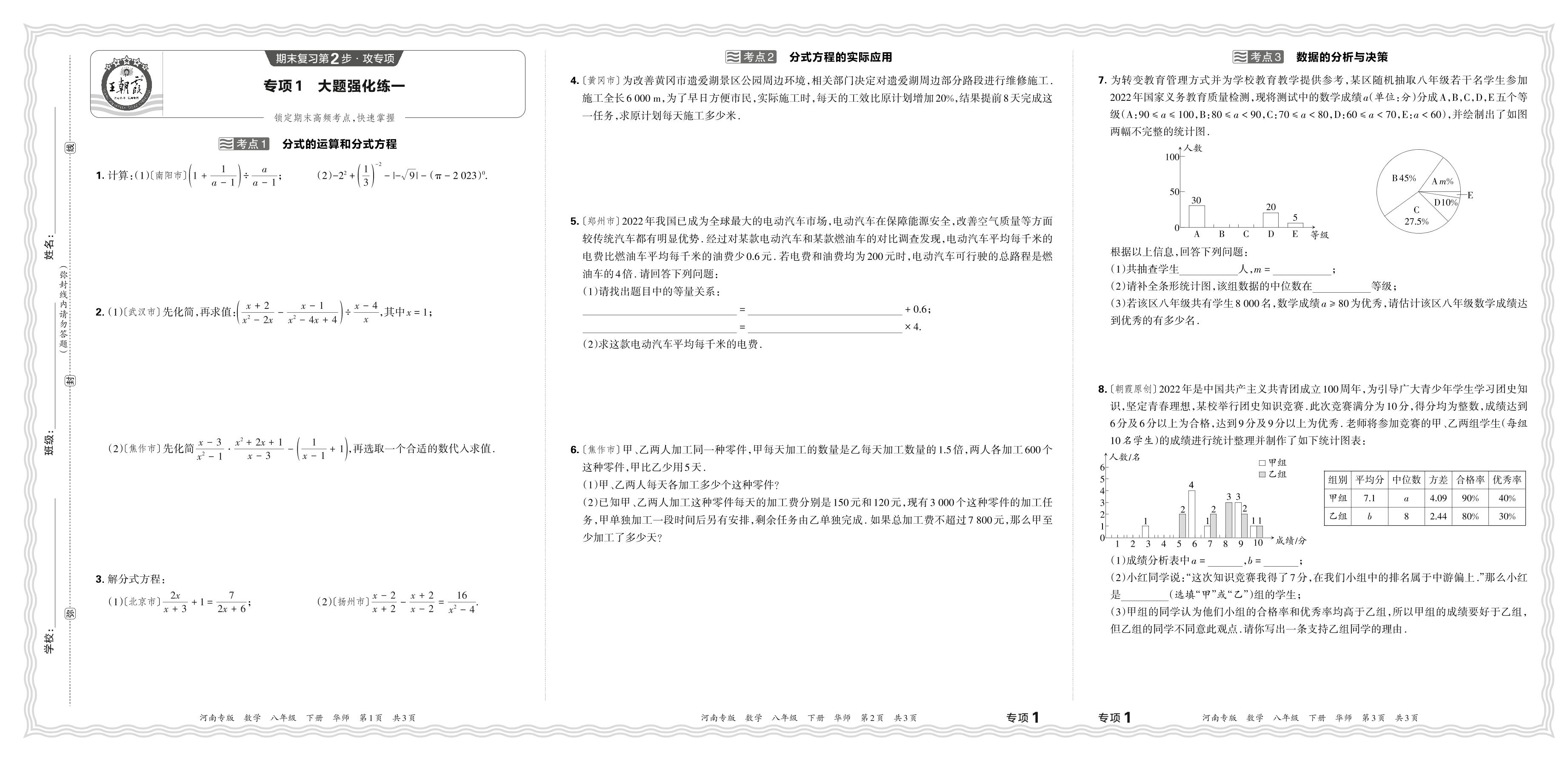 2024春下册八年级数学华师版 期末专项卷河南版·大题强化练一
