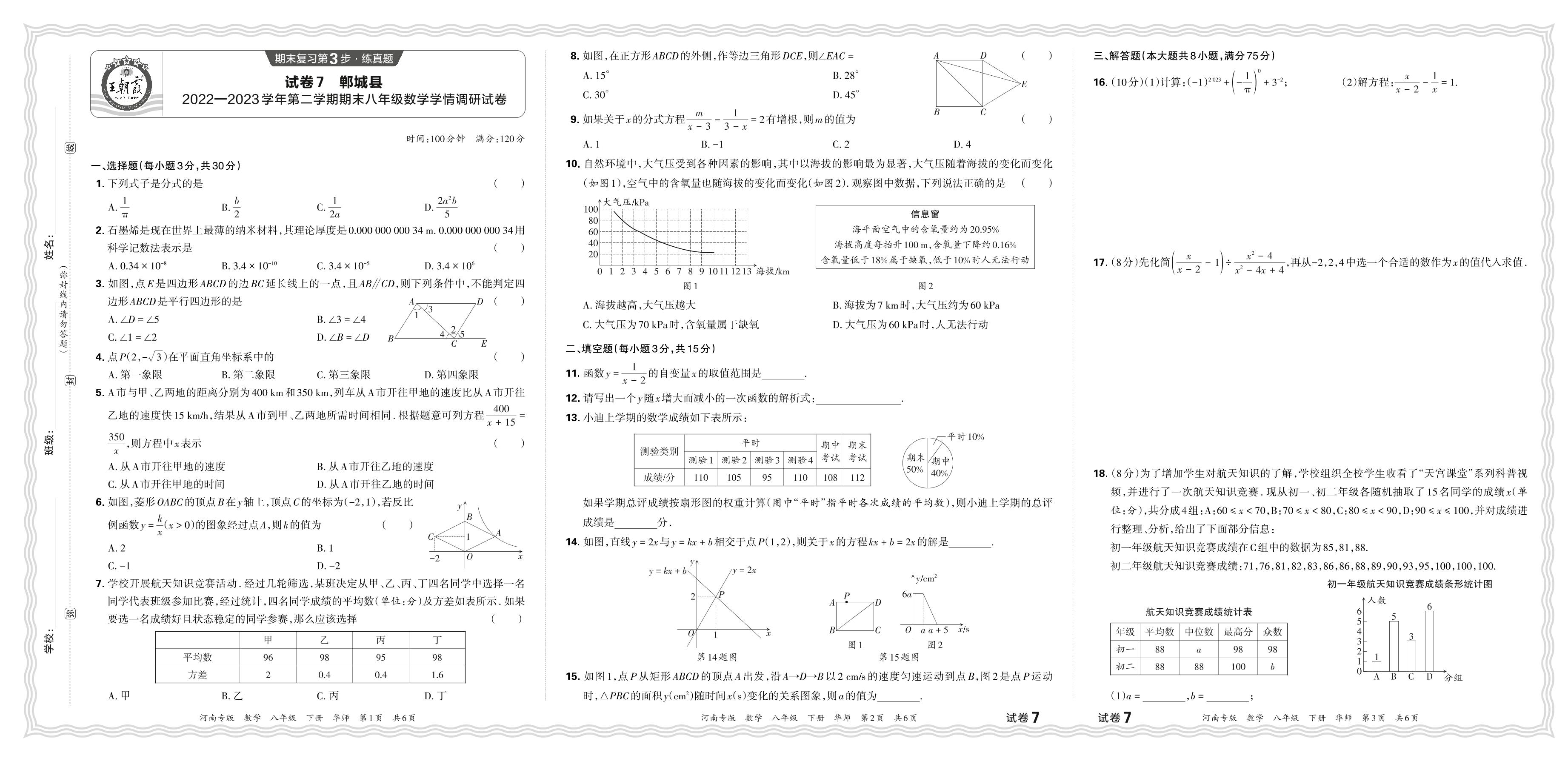 河南省郸城县2022-2023学年第二学期期末八年级数学学情调研试卷(华师版)【7】