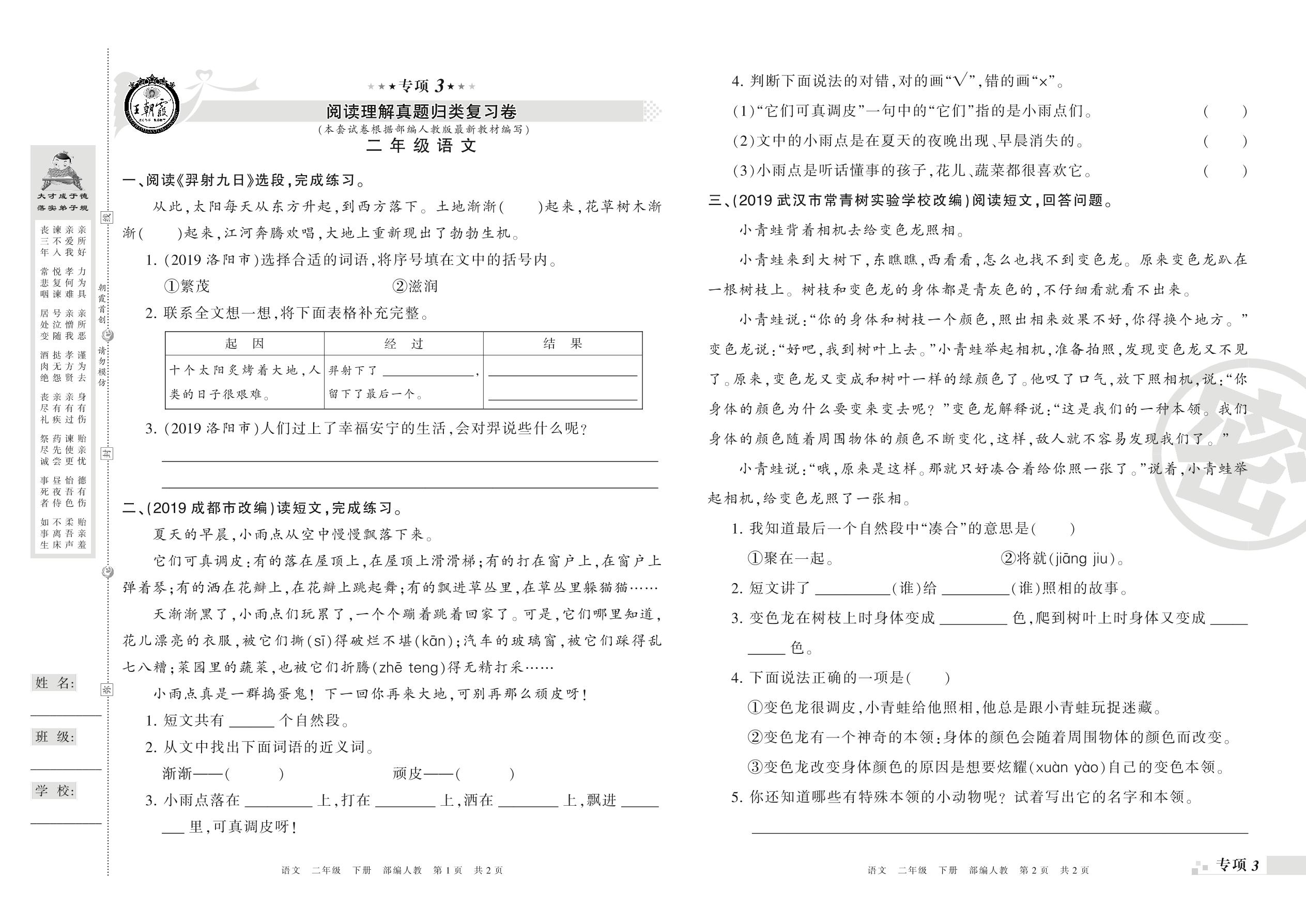 王朝霞期末专项卷——阅读理解、写话真题归类复习卷二年级下册语文(人教版)_R21080165919【0】