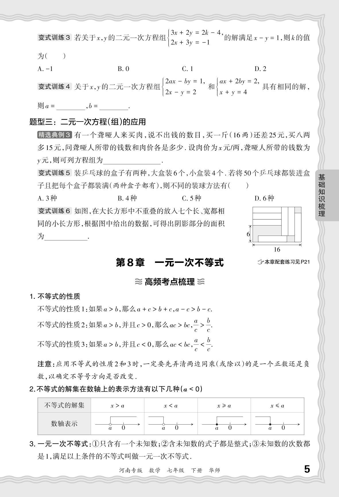 2024春下册七年级数学华师版 期末过课本河南版·基础知识梳理 第8章 一元一次不等式