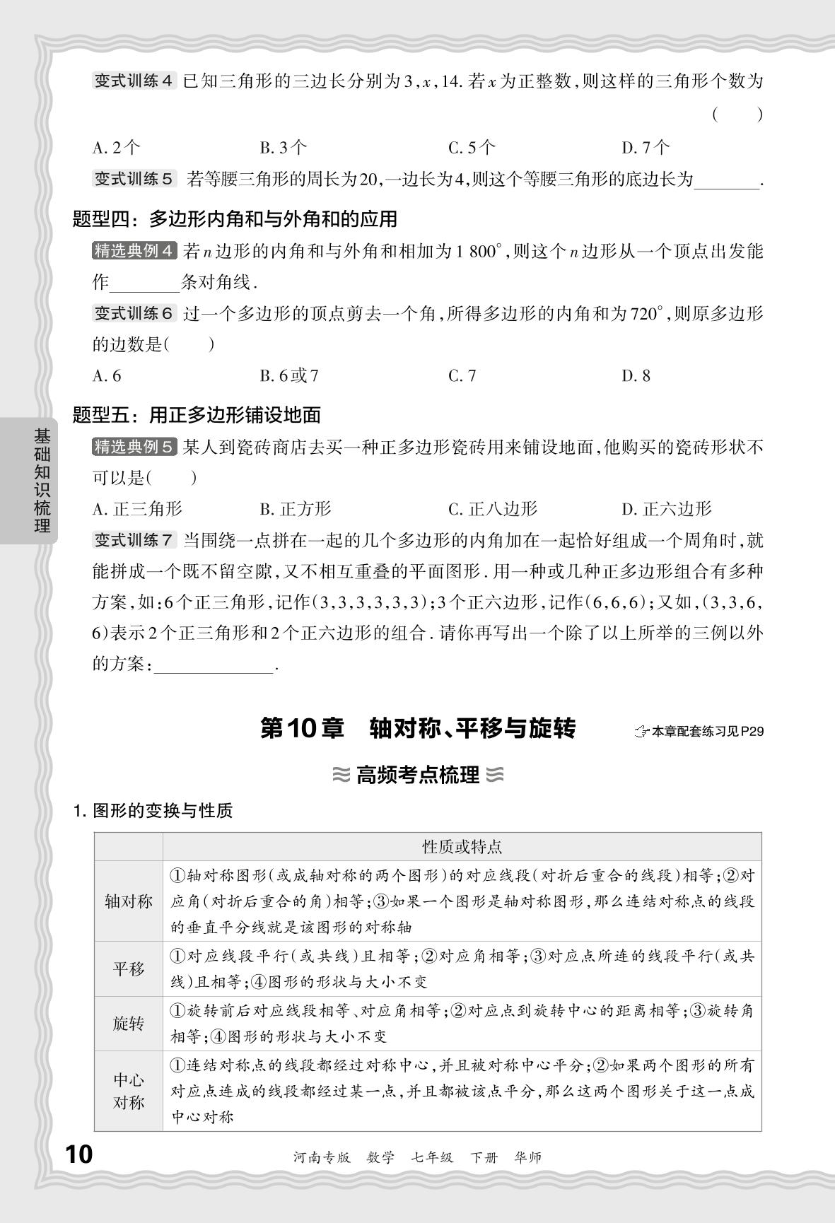 2024春下册七年级数学华师版 期末过课本河南版·基础知识梳理 第10章 轴对称、平移与旋转