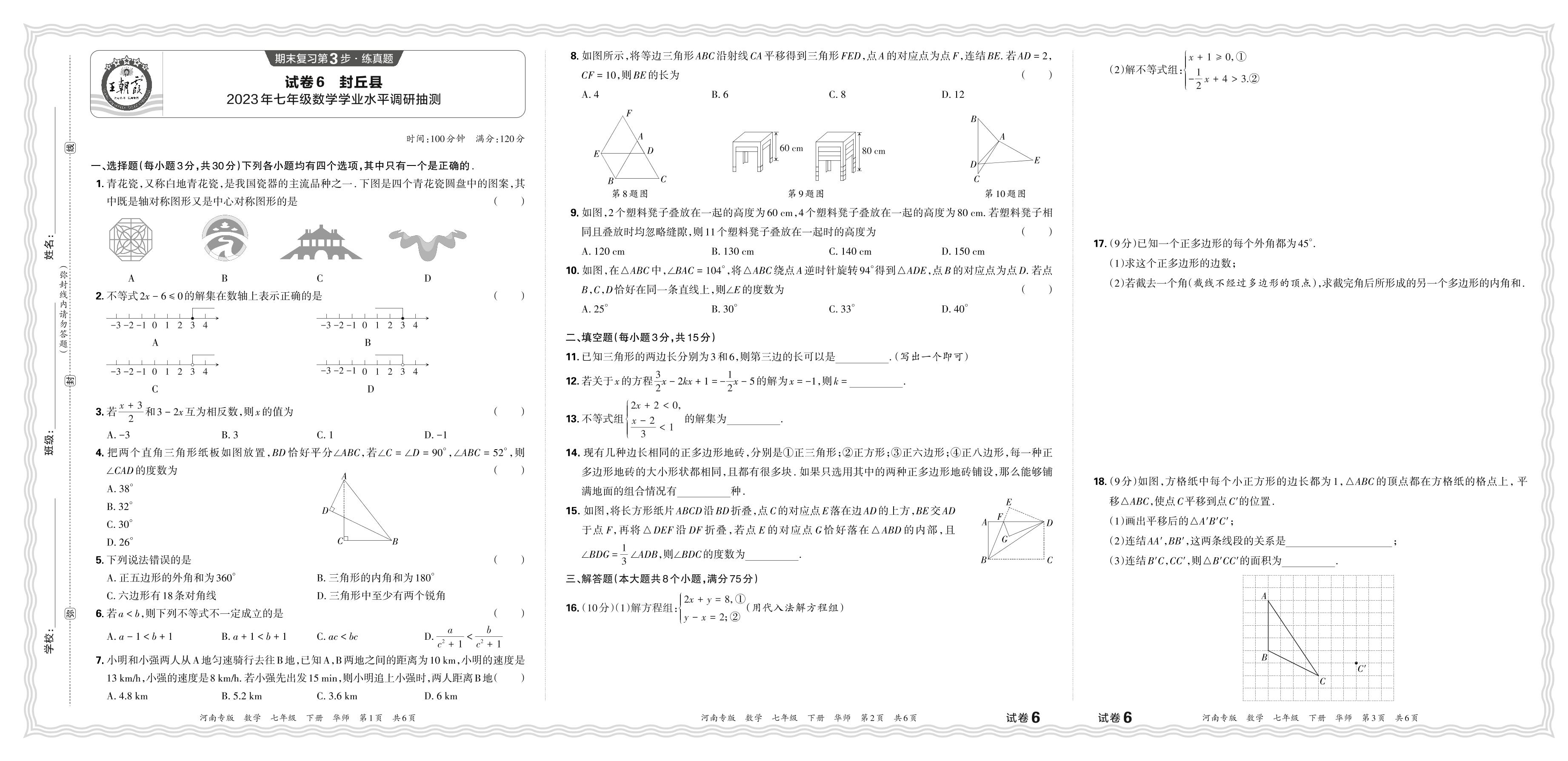 河南省封丘县2023年下学期期末七年级数学学业水平调研抽测(华师版)【6】