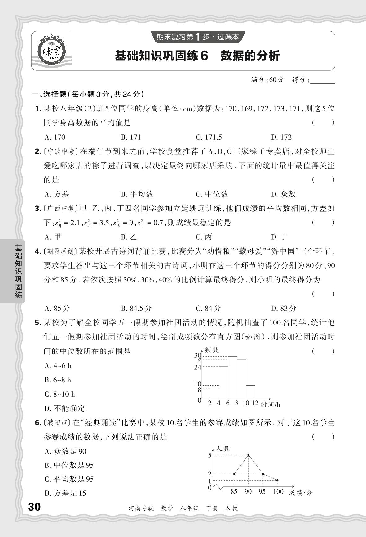 2024春下册八年级数学人教版 期末过课本河南版·基础知识巩固练 数据的分析【6】