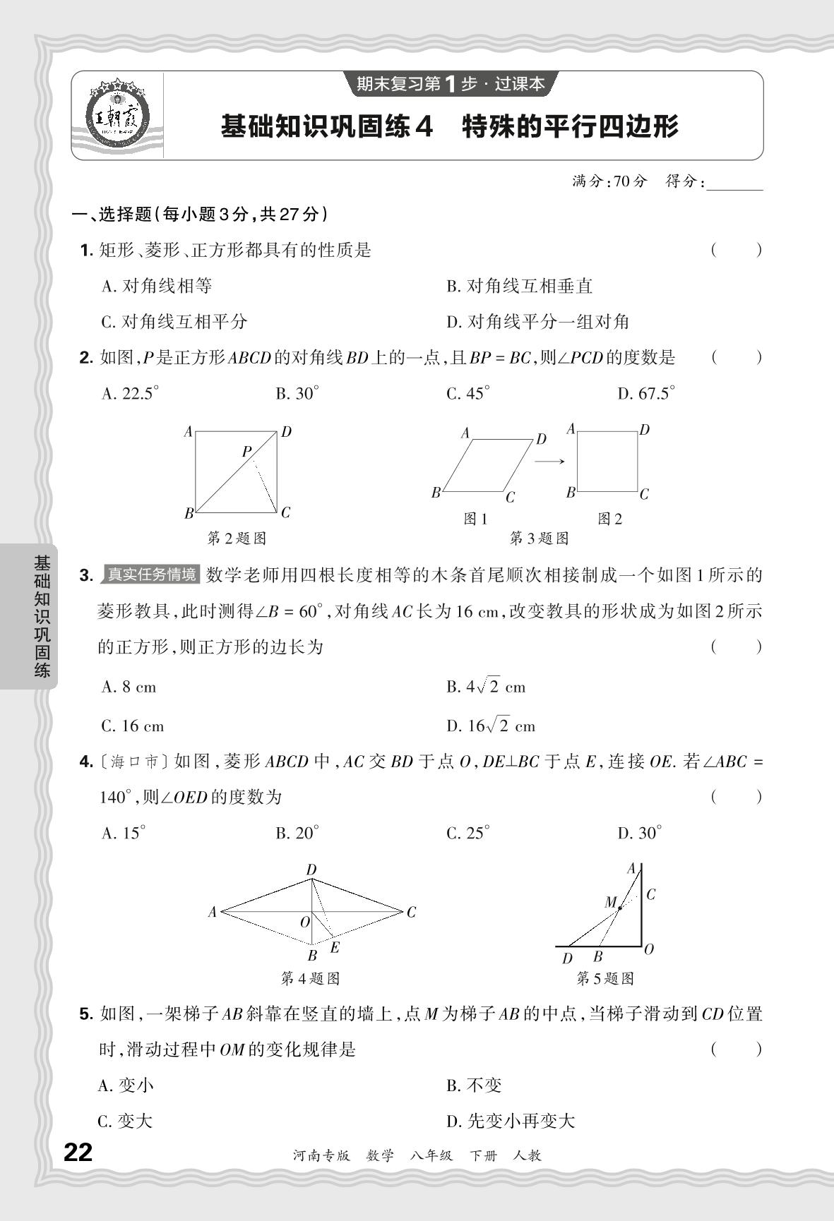 2024春下册八年级数学人教版 期末过课本河南版·基础知识巩固练 特殊的平行四边形【4】