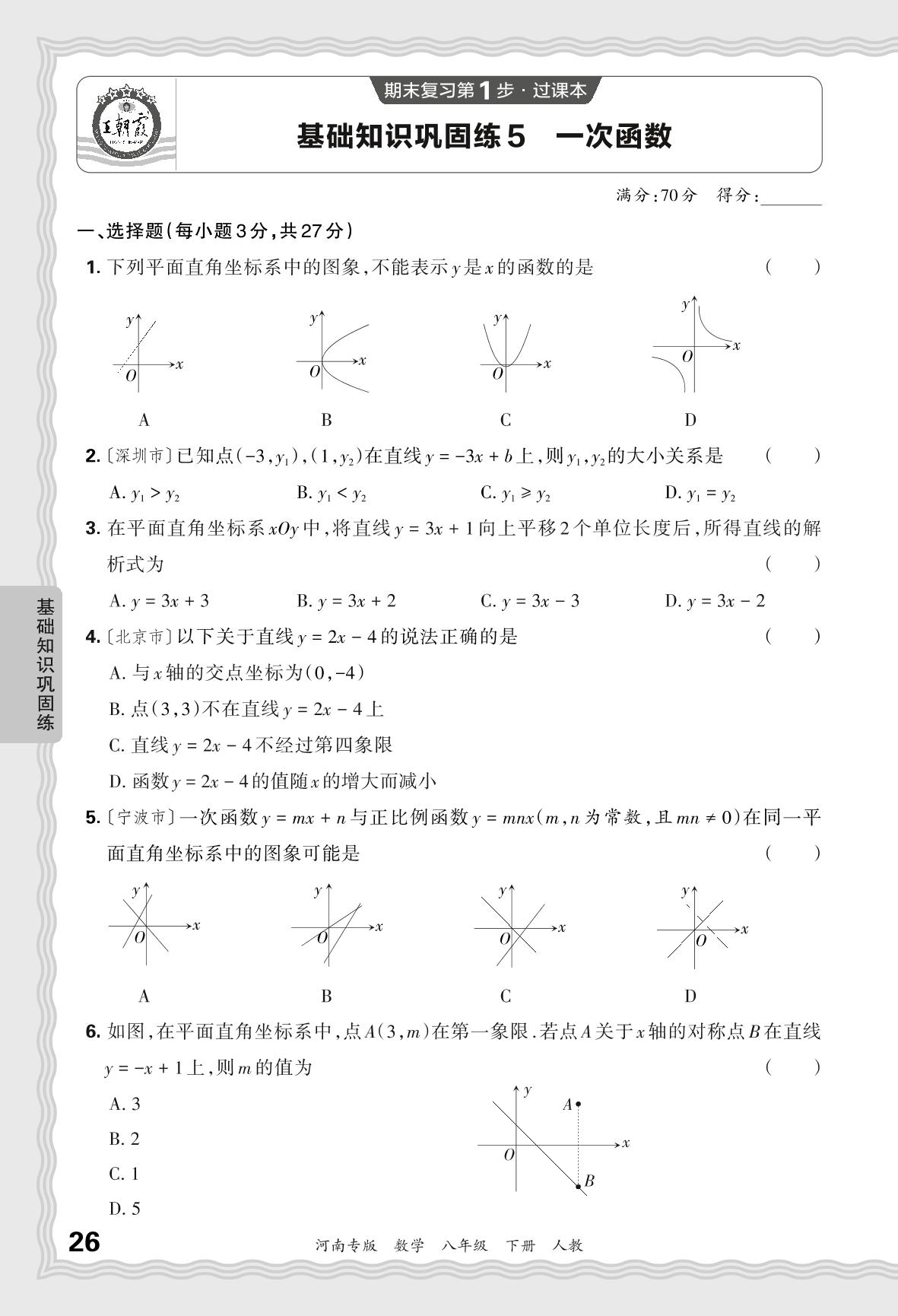 2024春下册八年级数学人教版 期末过课本河南版·基础知识巩固练 一次函数【5】