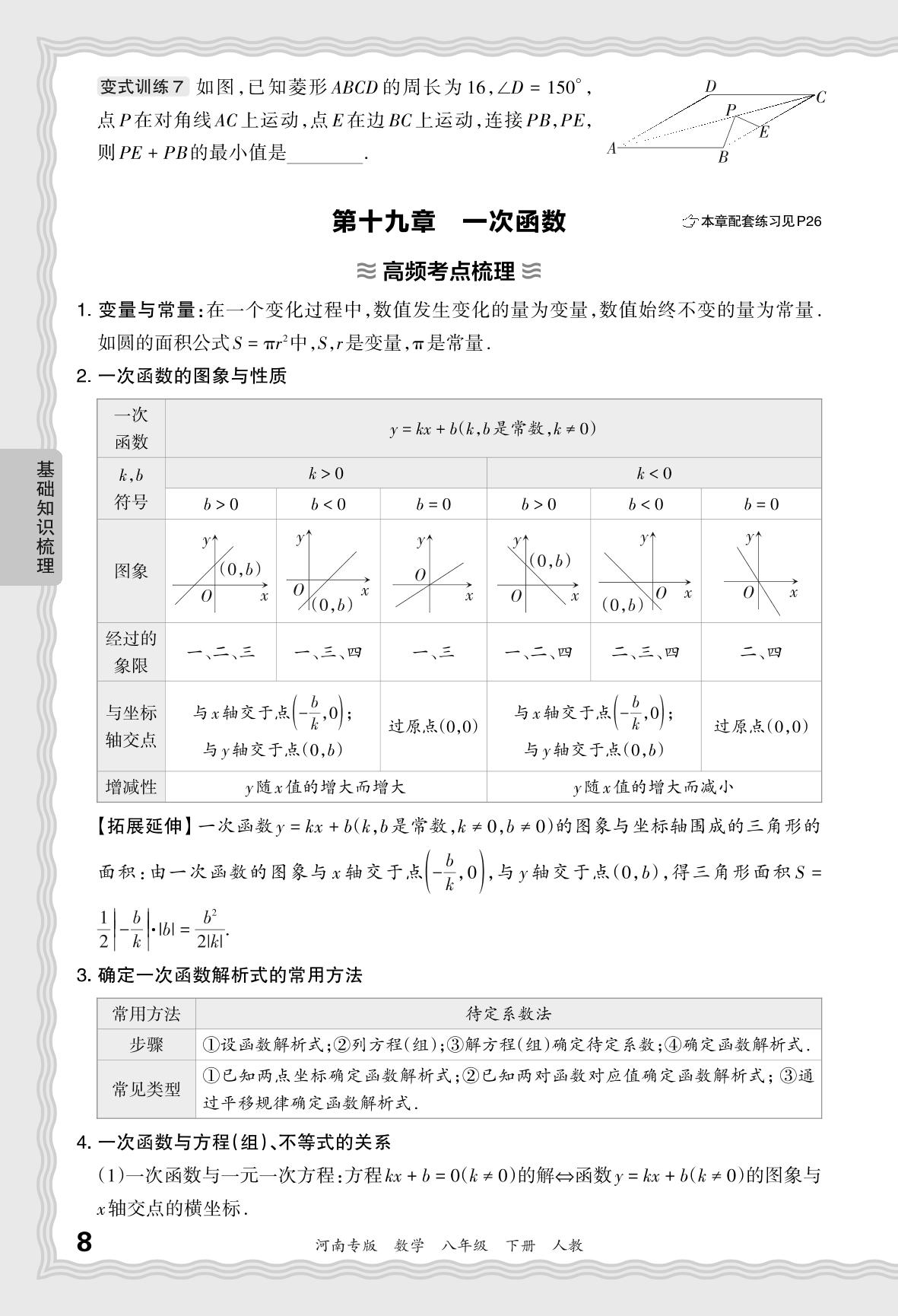 2024春下册八年级数学人教版 期末过课本河南版·基础知识梳理 第十九章 一次函数