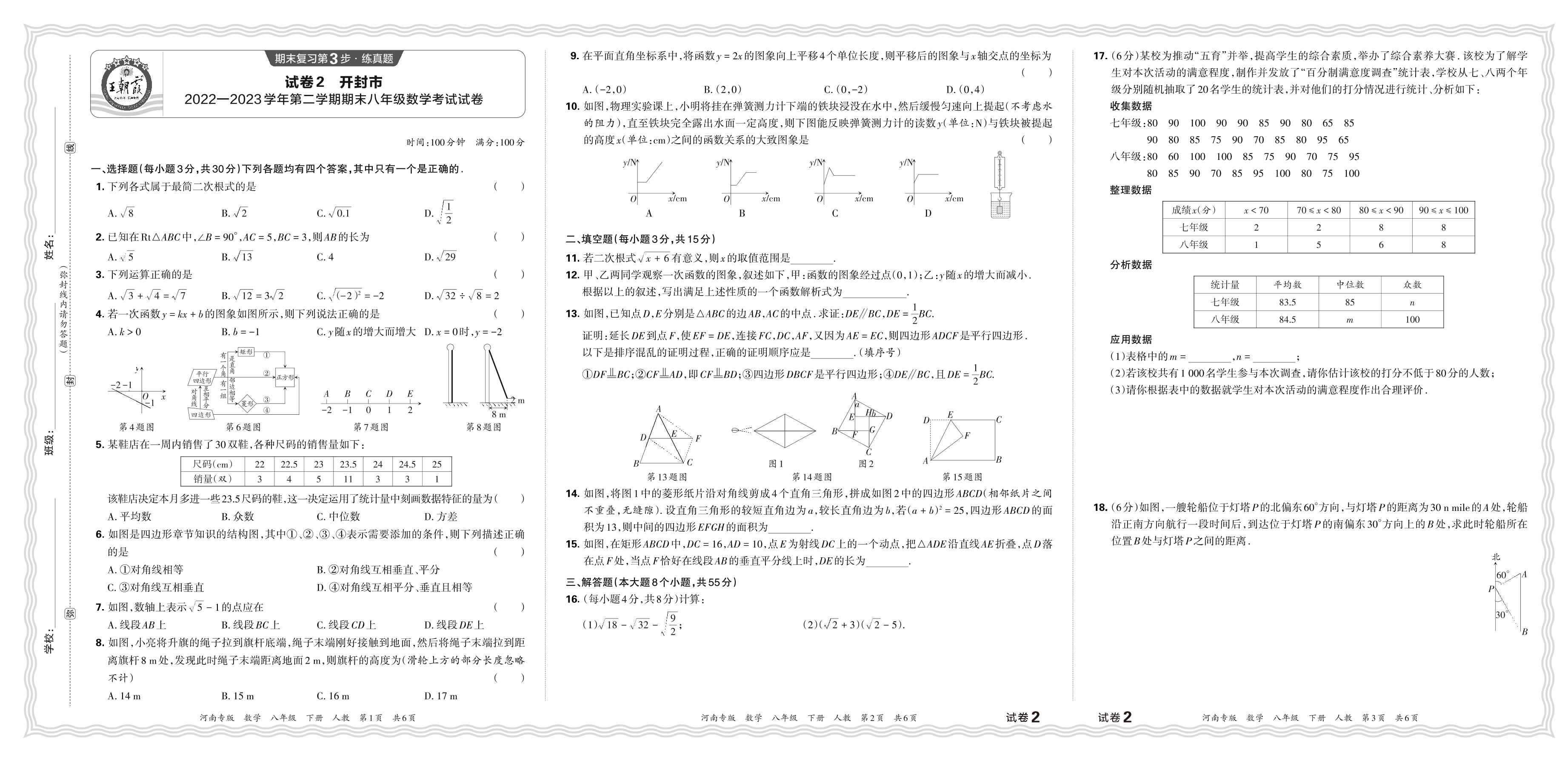 河南省开封市2022-2023学年第二学期期末八年级数学考试试卷(人教版)【2】