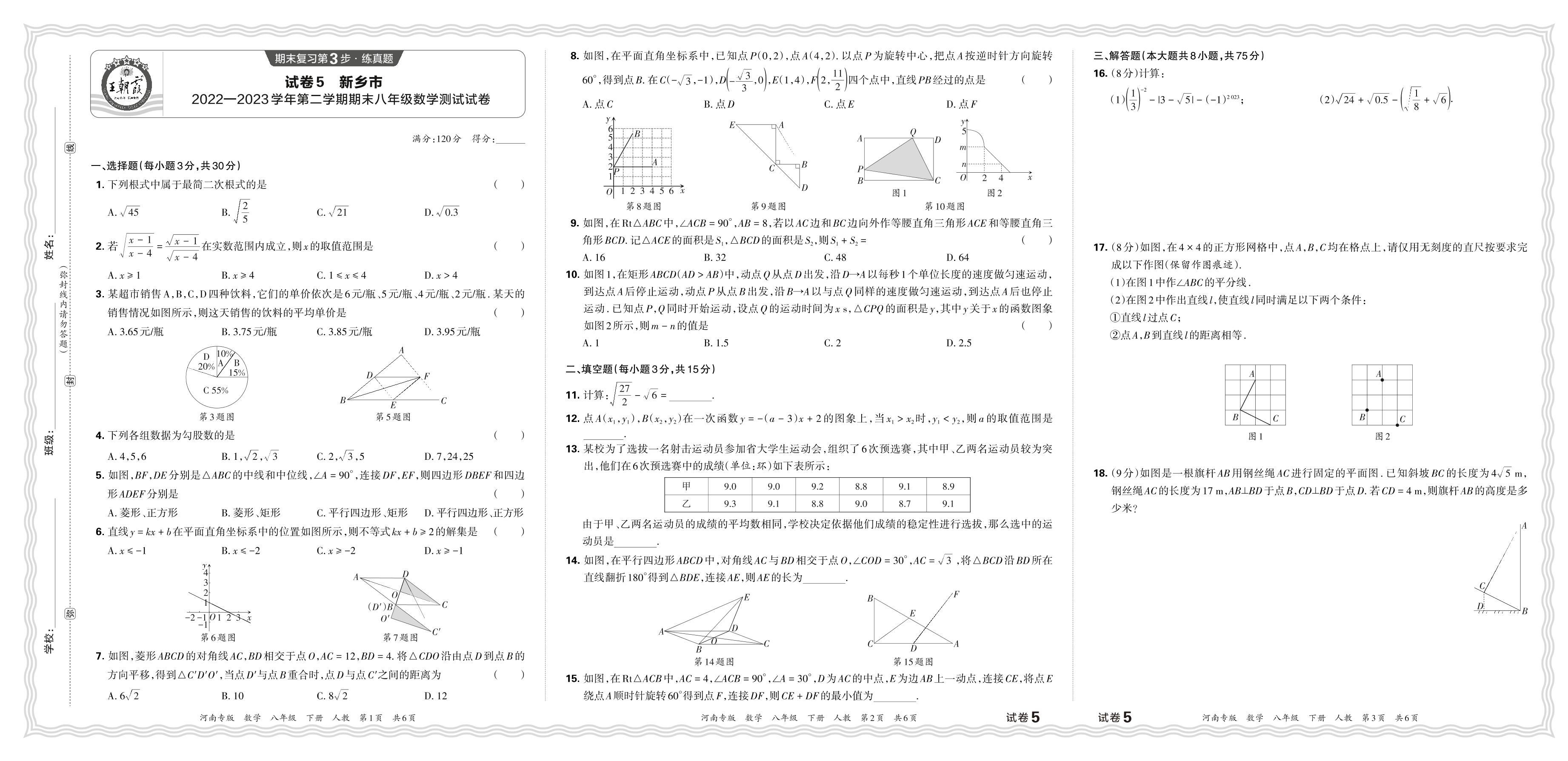 河南省新乡市2022-2023学年第二学期期末八年级数学测试试卷(人教版)【5】