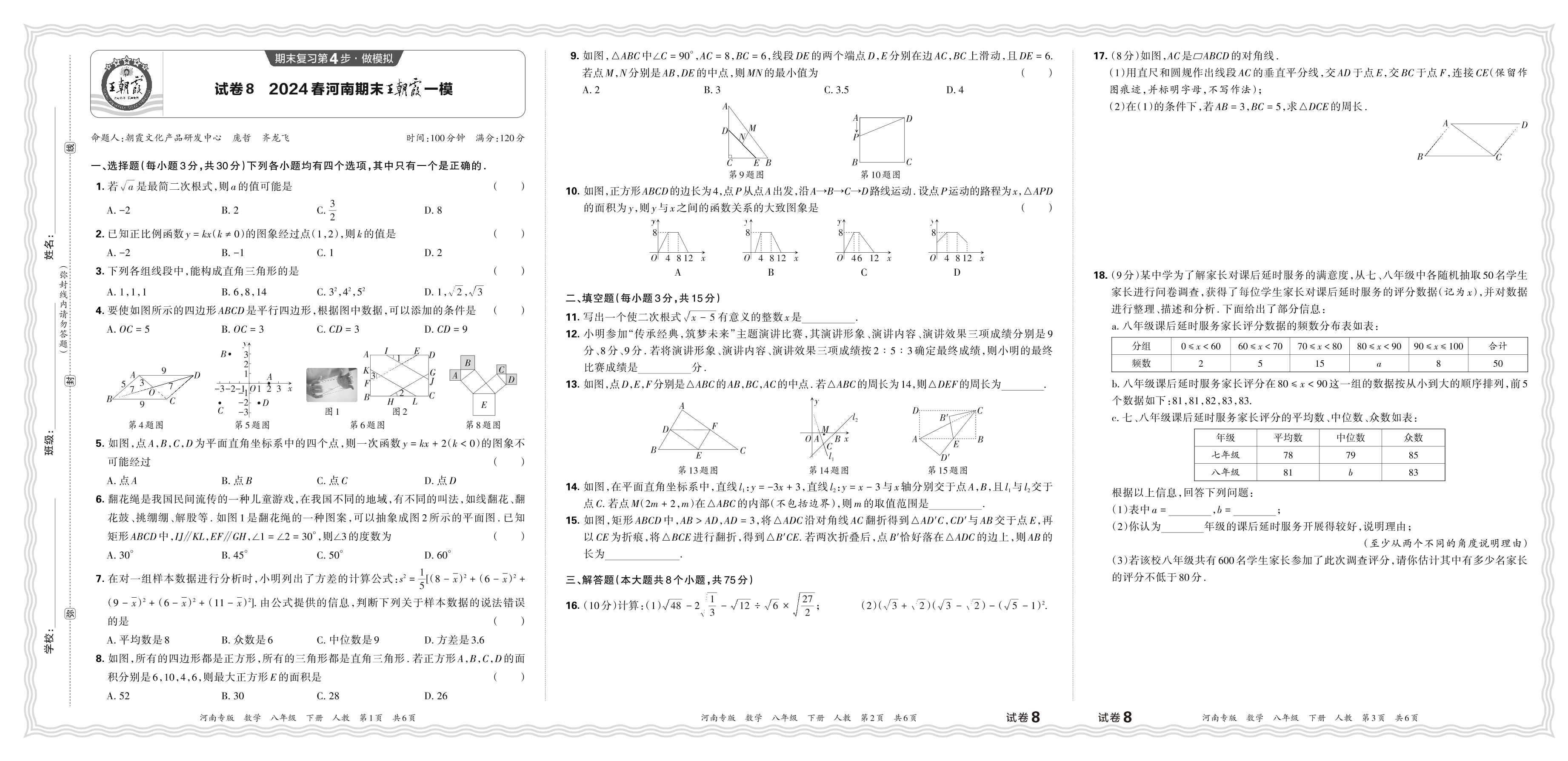 2024春下册八年级数学人教版 河南期末王朝霞一模