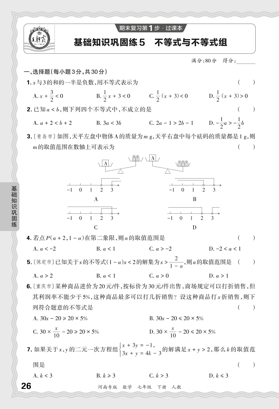 2024春下册七年级数学人教版 期末过课本河南版·基础知识巩固练 不等式与不等式组【5】