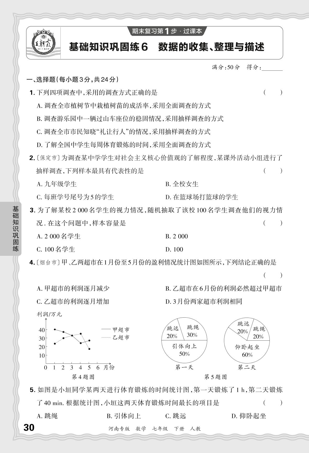 2024春下册七年级数学人教版 期末过课本河南版·基础知识巩固练 数据的收集、整理与描述【6】