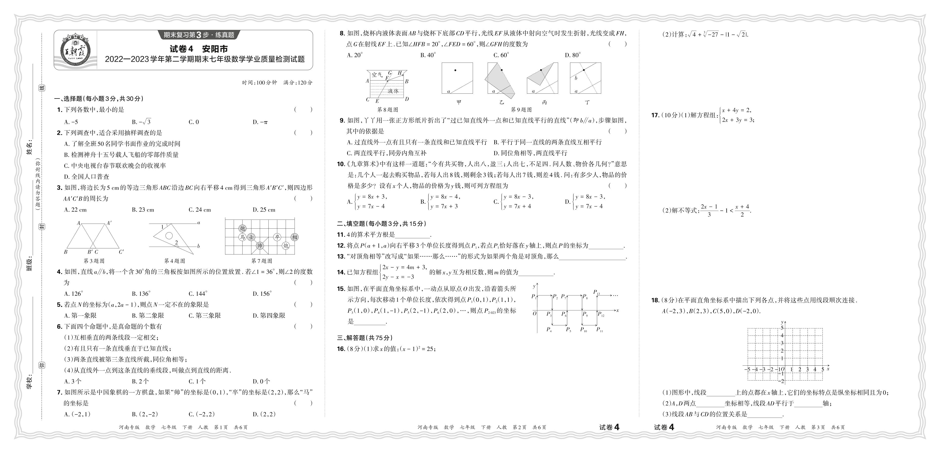 河南省安阳市2022-2023学年第二学期期末七年级数学学业质量检测试题(人教版)【4】