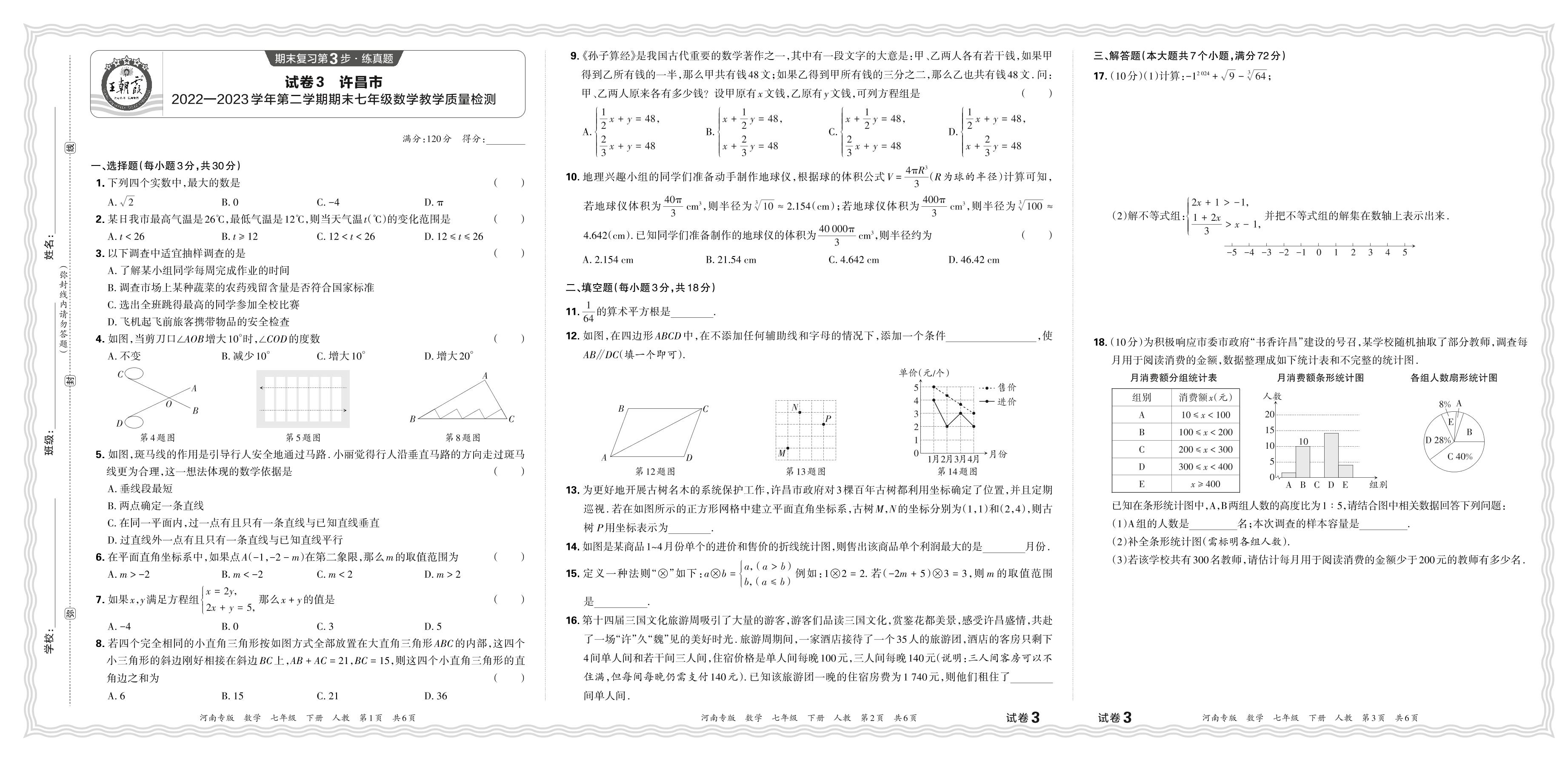 河南省许昌市2022-2023学年第二学期期末七年级数学教学质量检测(人教版)【3】