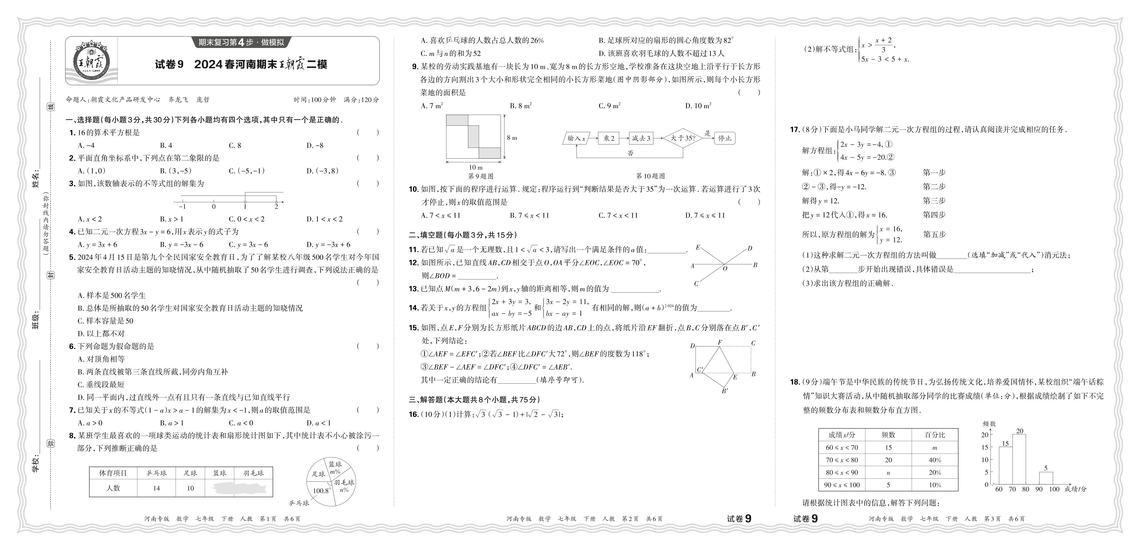 2024春下册七年级数学人教版 河南期末王朝霞二模