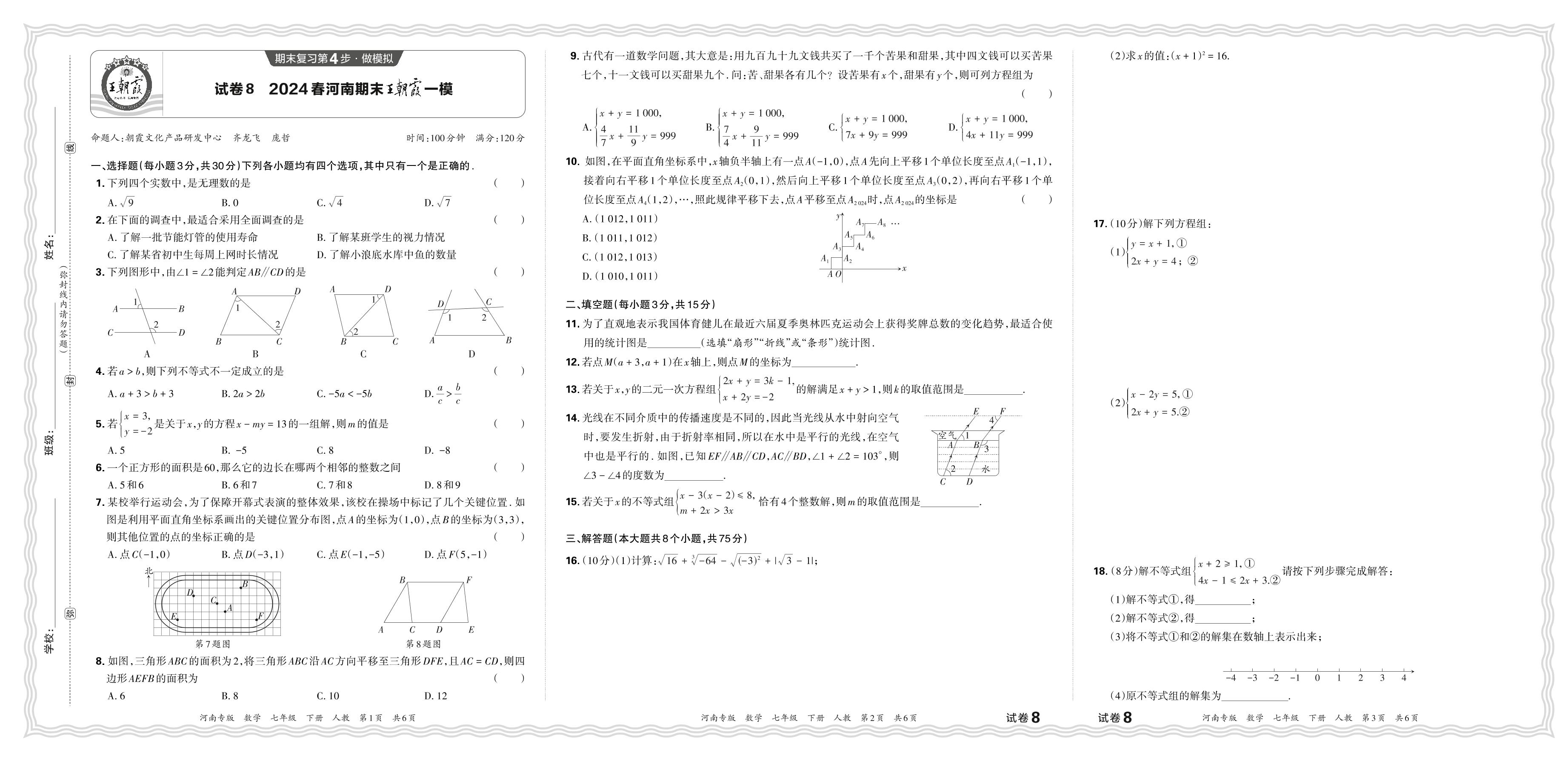 2024春下册七年级数学人教版 河南期末王朝霞一模
