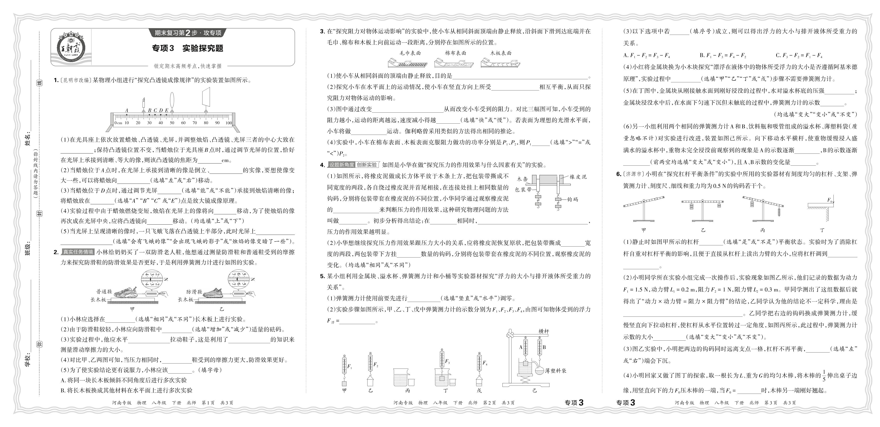 2024春下册八年级物理北师版 期末专项卷河南版·实验探究题【3】