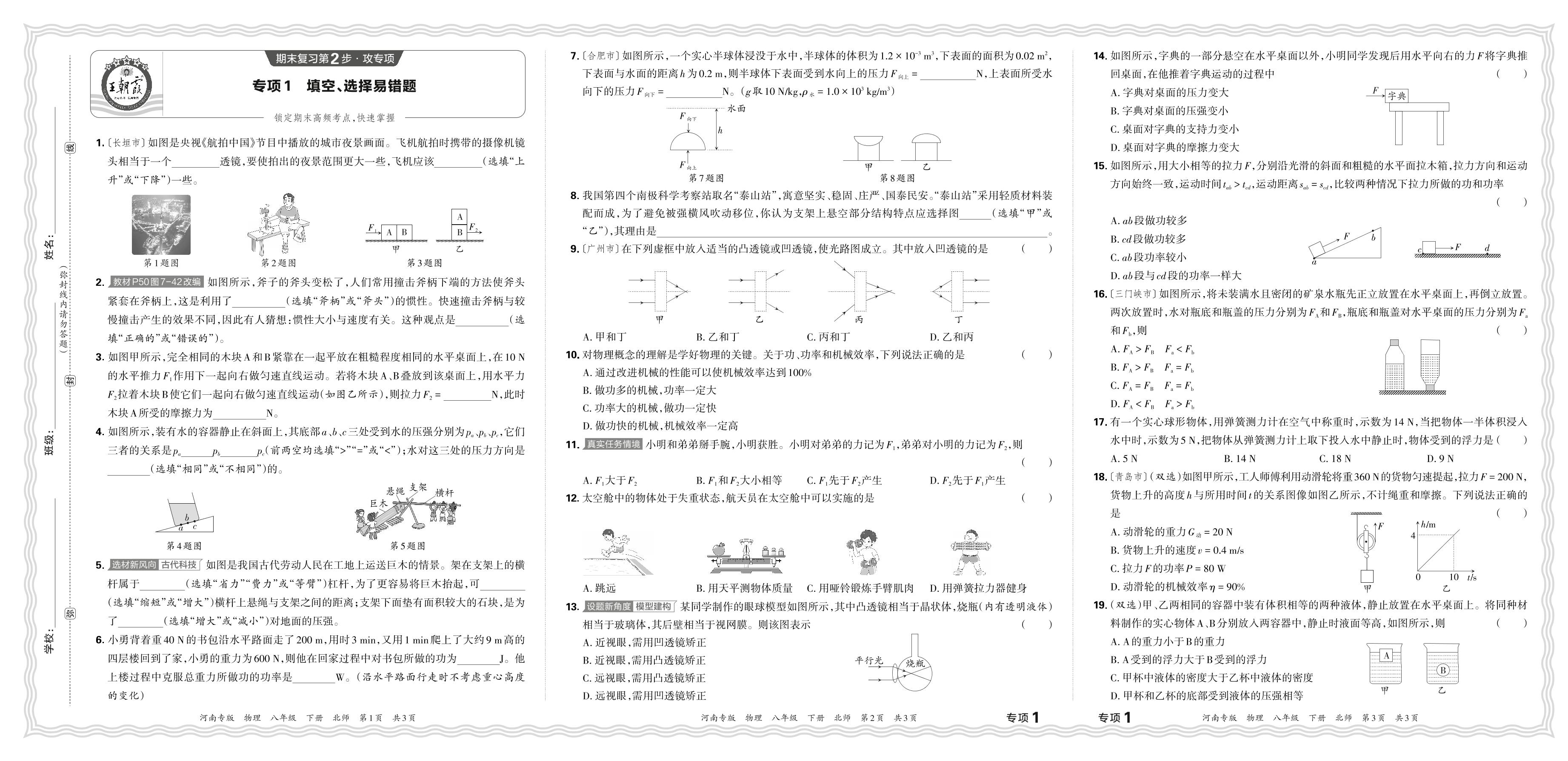 2024春下册八年级物理北师版 期末专项卷河南版·填空、选择易错题【1】